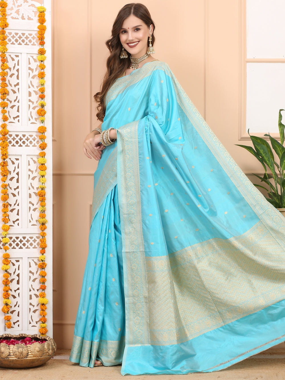 Aqua Blue Katan Silk Saree