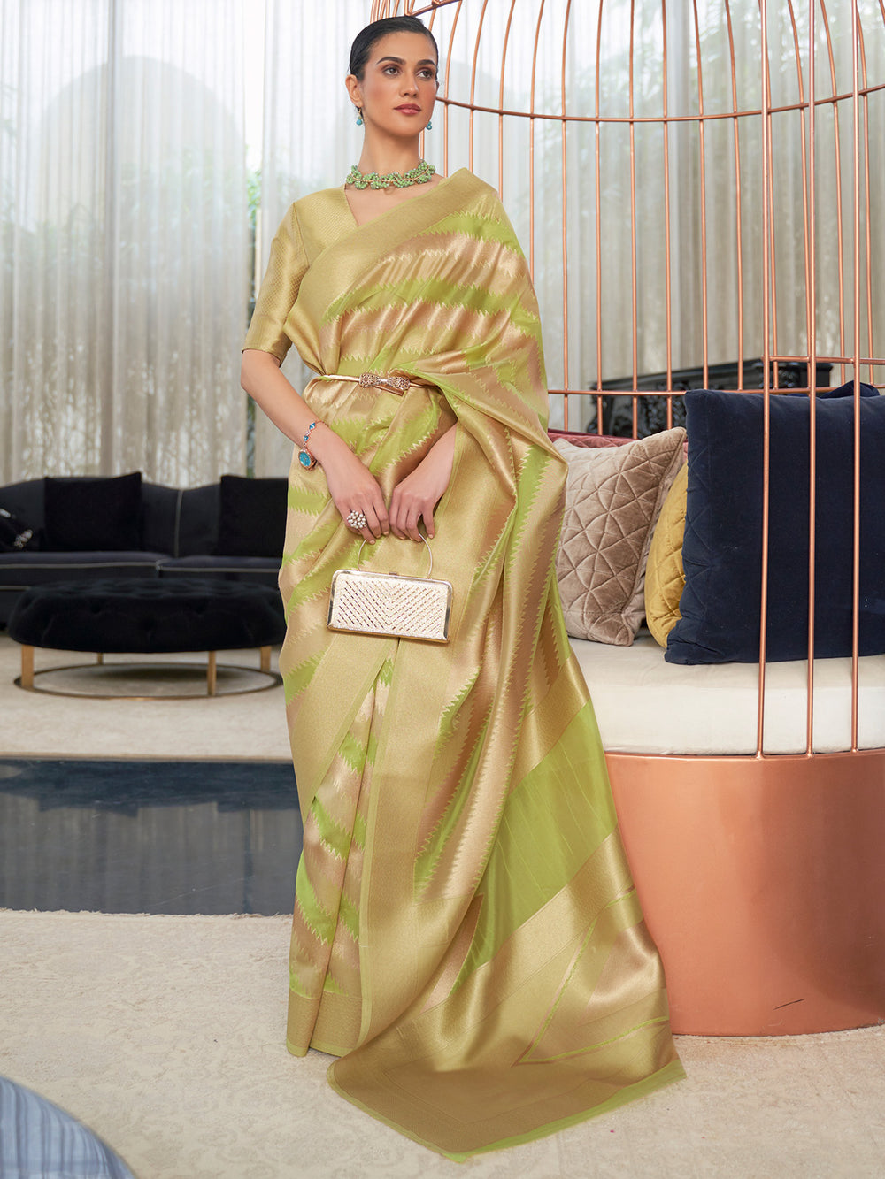 Emerald Green Purple & Pink Pure Katan Silk Saree