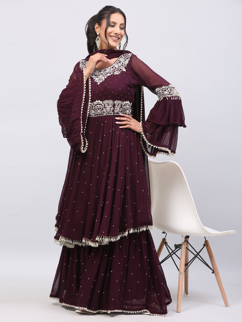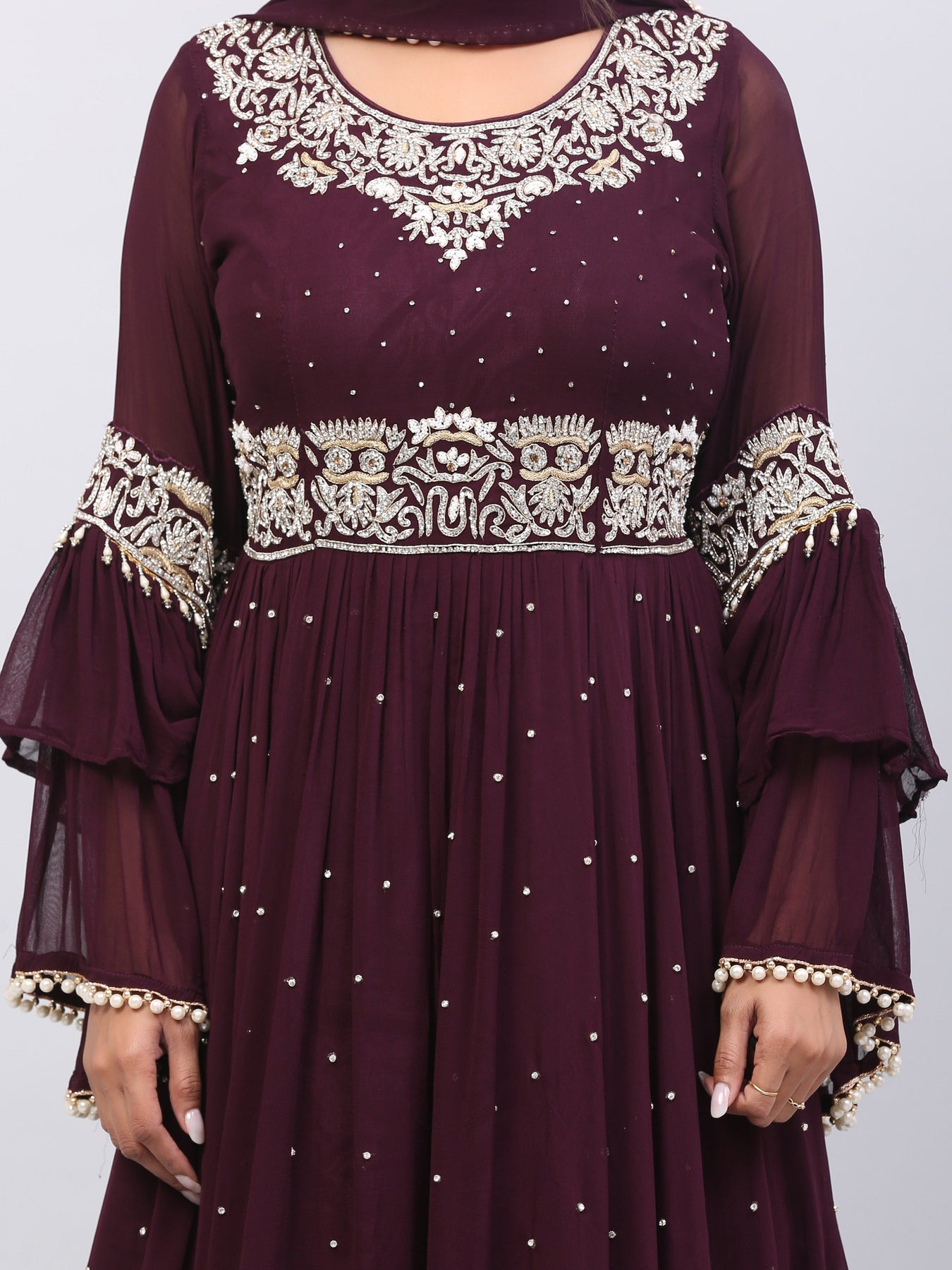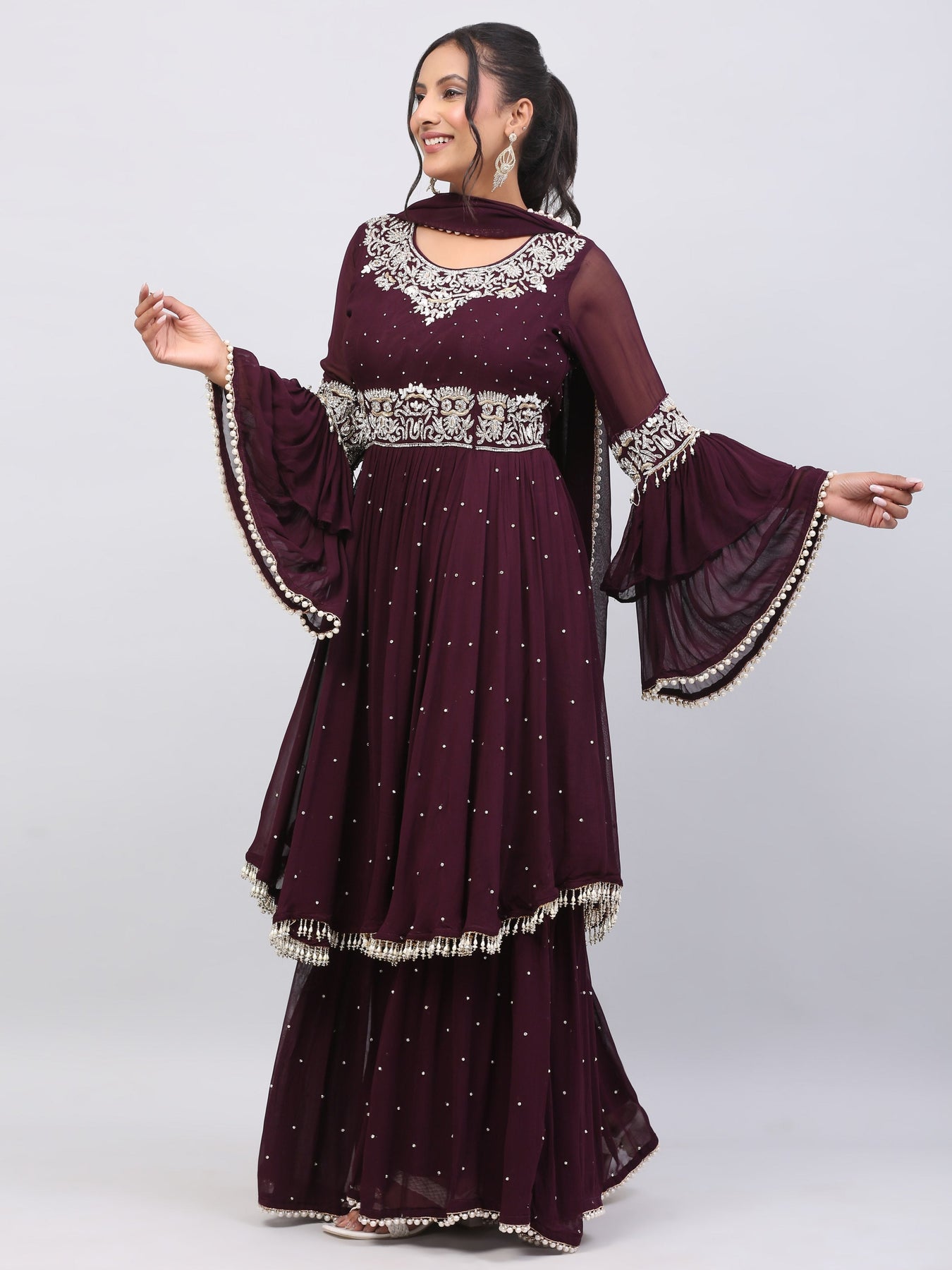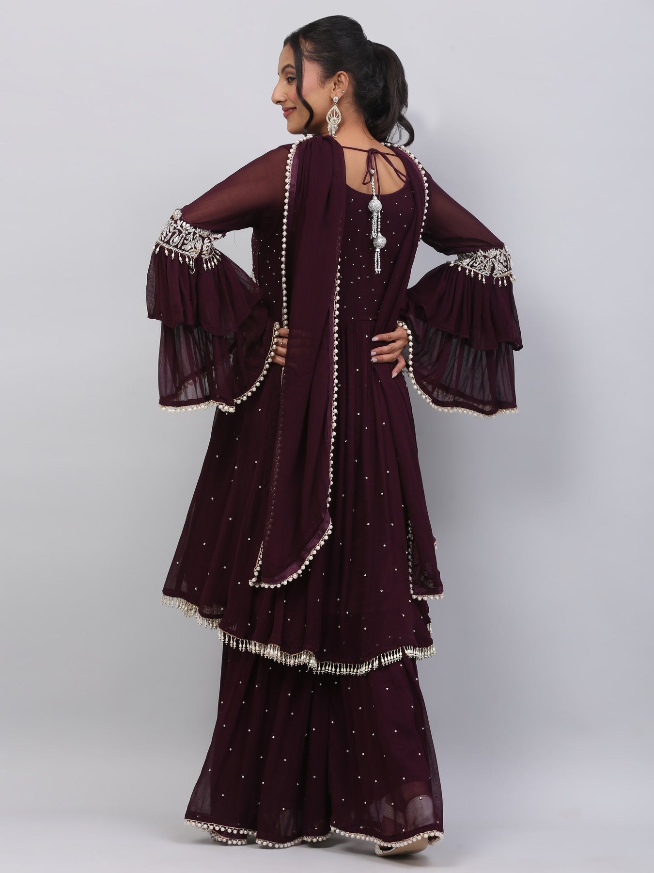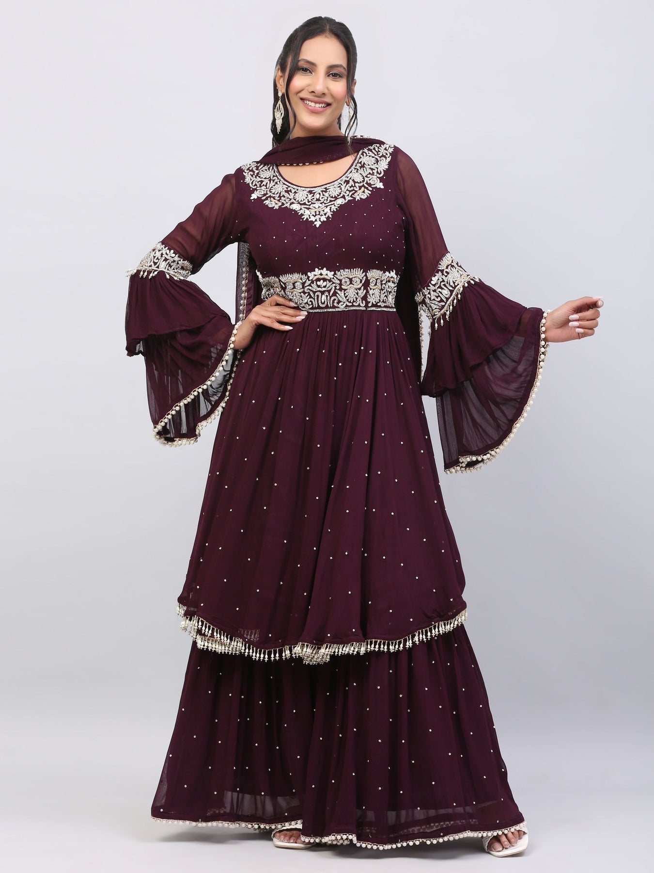 Georgette kurti with heavy pearl and stone work on neckline and waist..