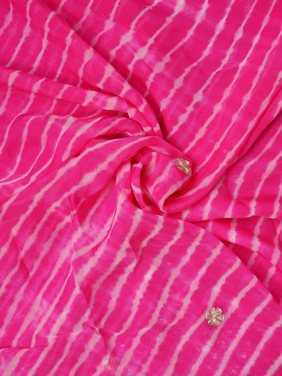 This Organza Leheriya Saree with Gota Patti work on border and Pallu are traditional regional styles  showcasing the crafts & mastery of our artisans..The vibrant colour and weave of the Saree display our rich Indian culture and give it a Royal touch...