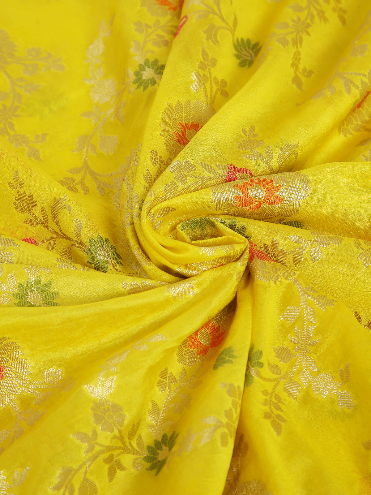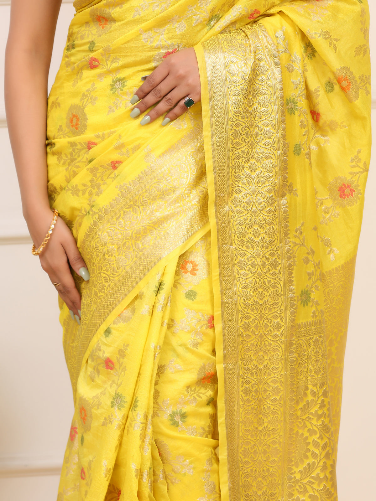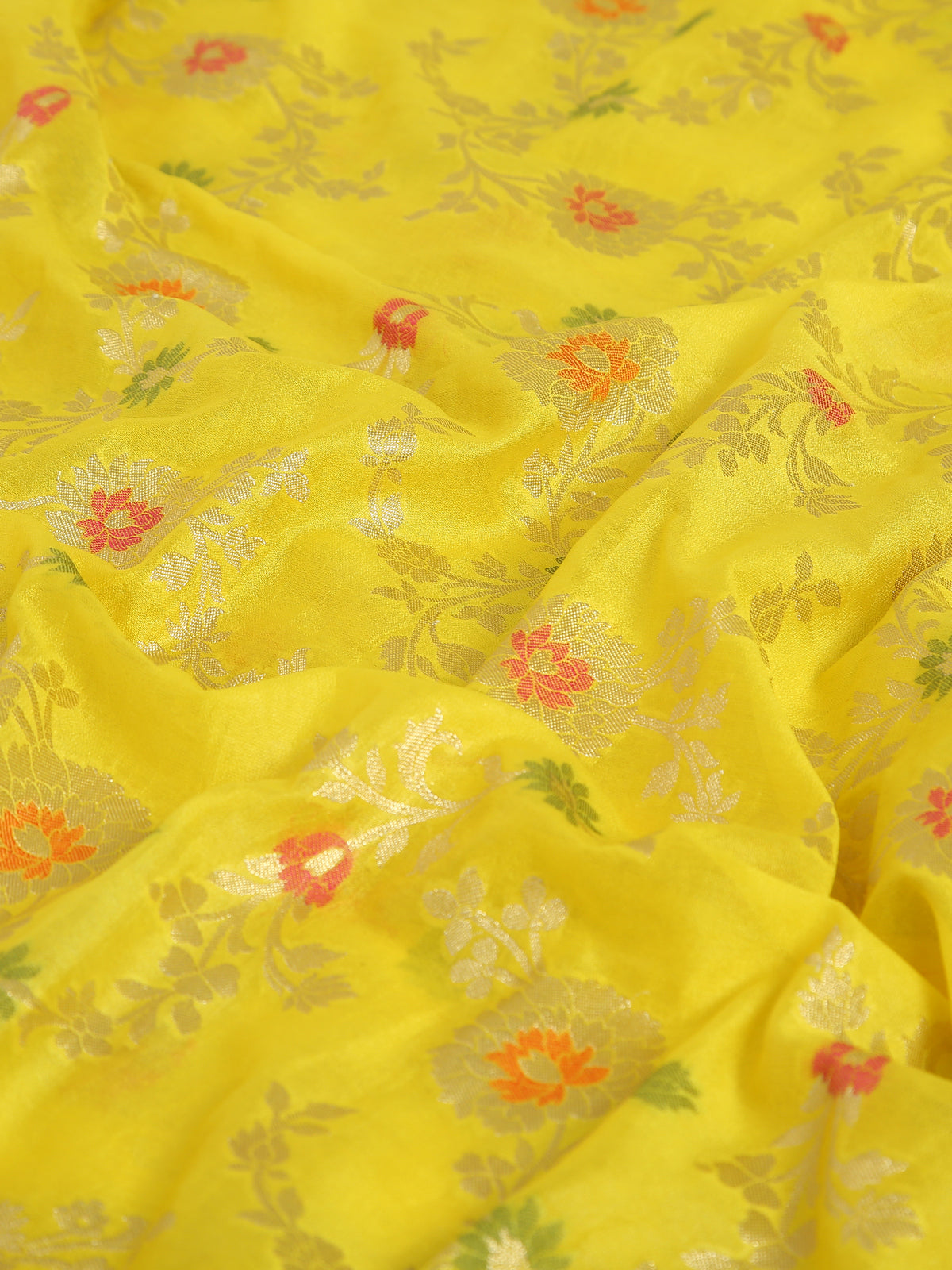 Banarasi semi Organza Yellow saree with almond zari and meena weave....