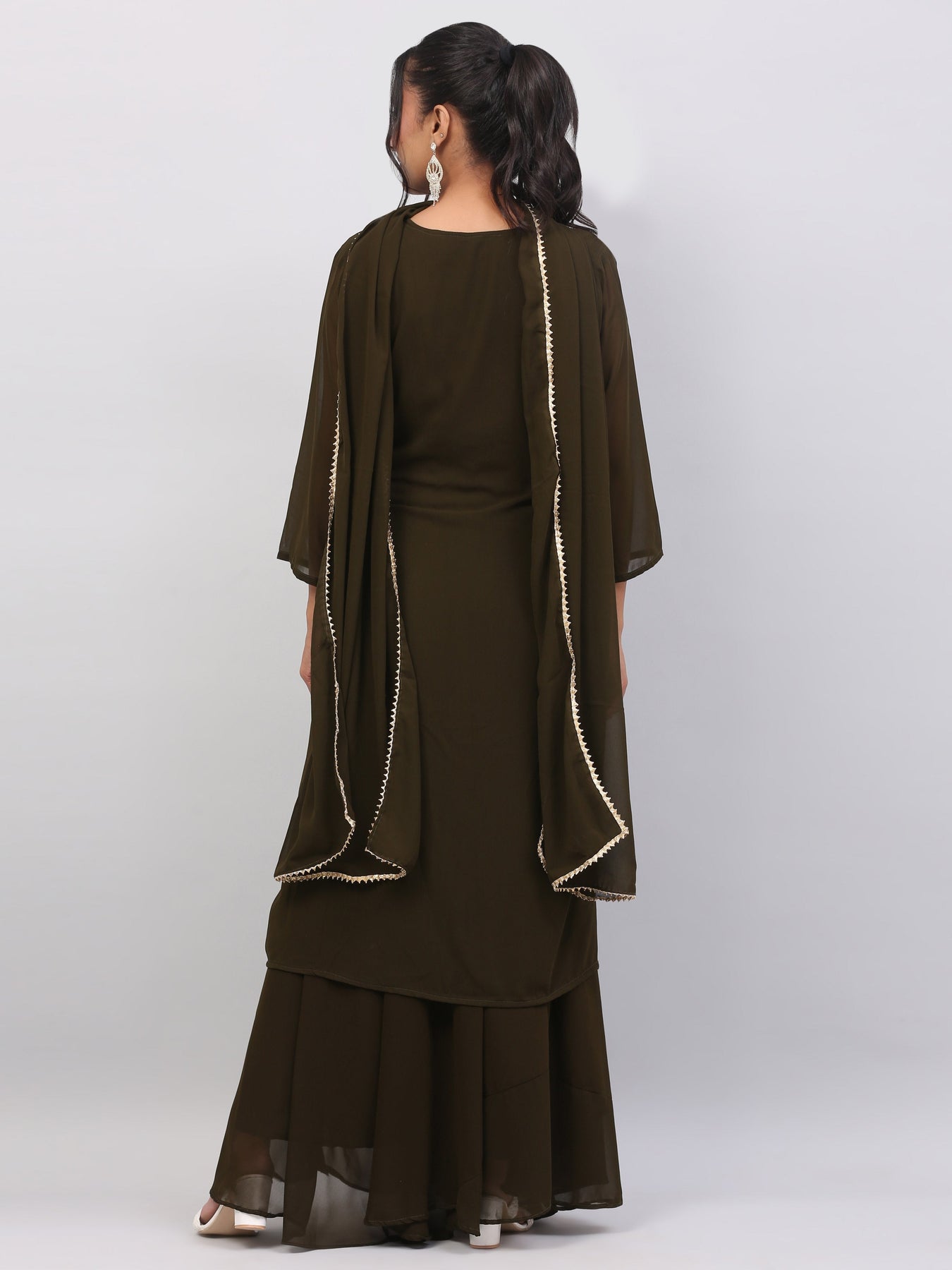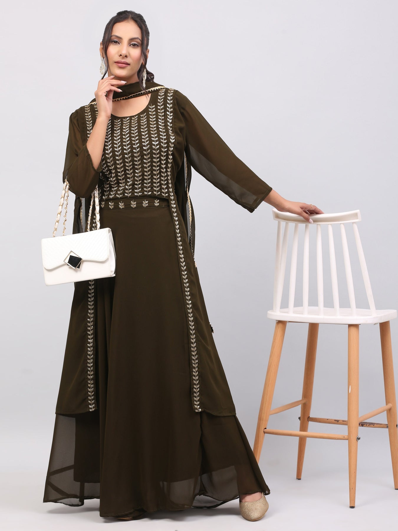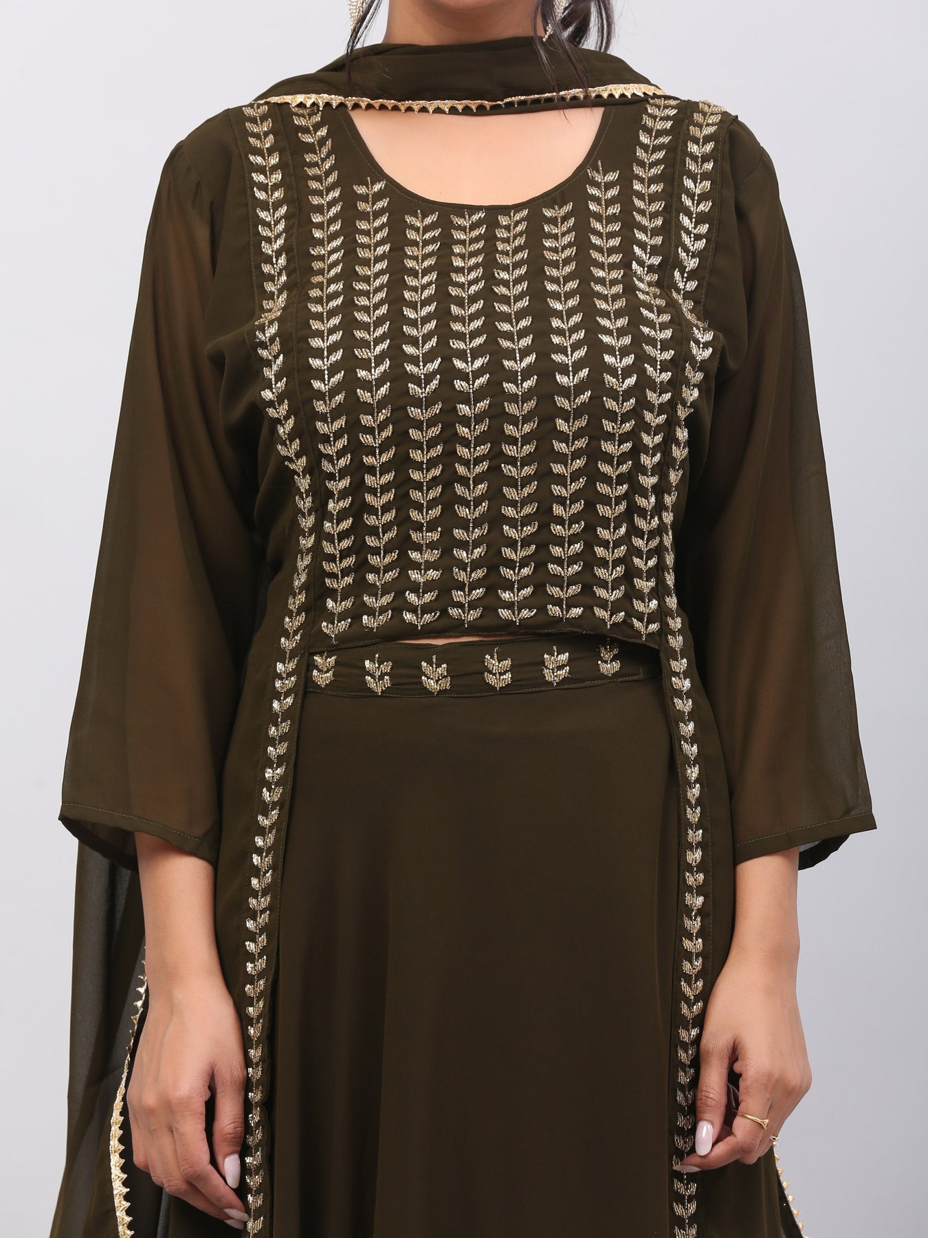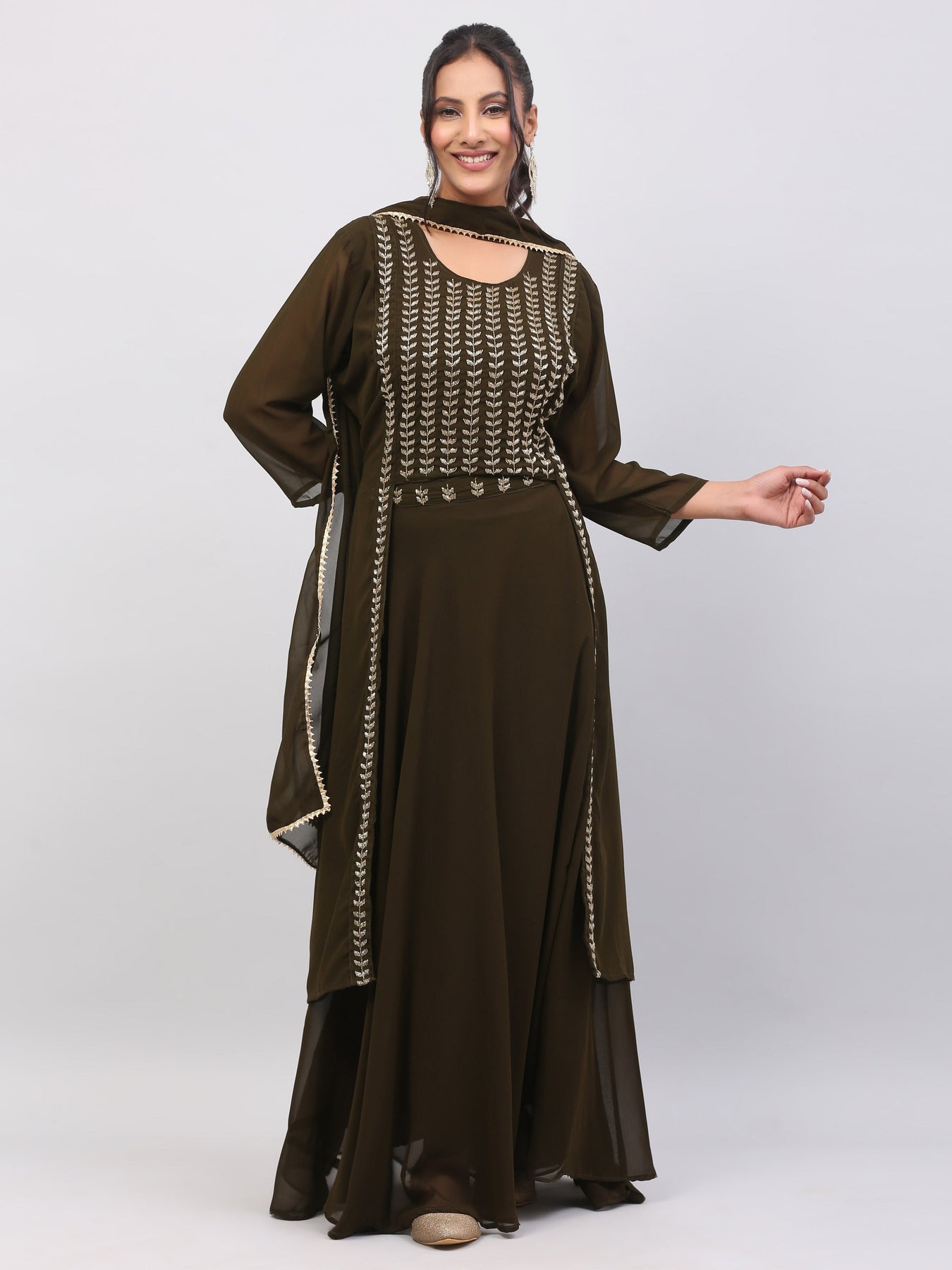 Georgette full flare skirt with embroidered belt and matching stole dupatta...