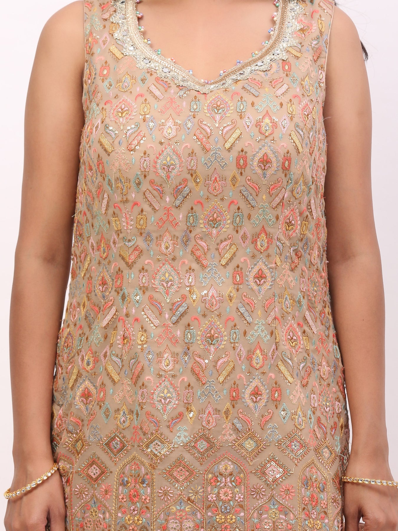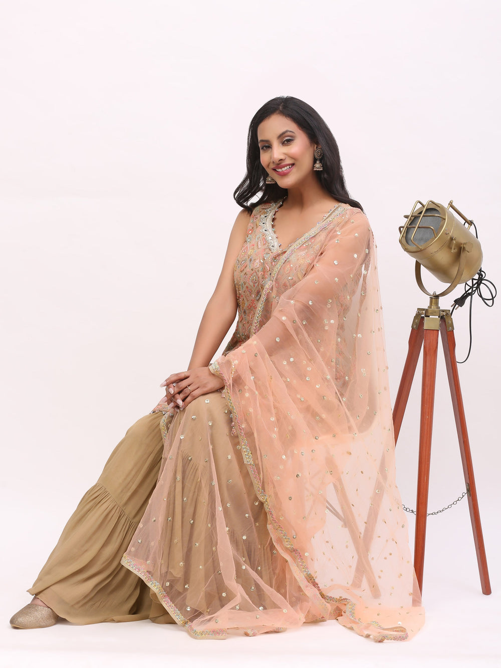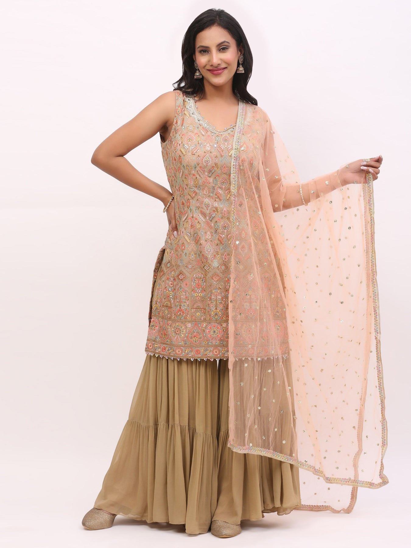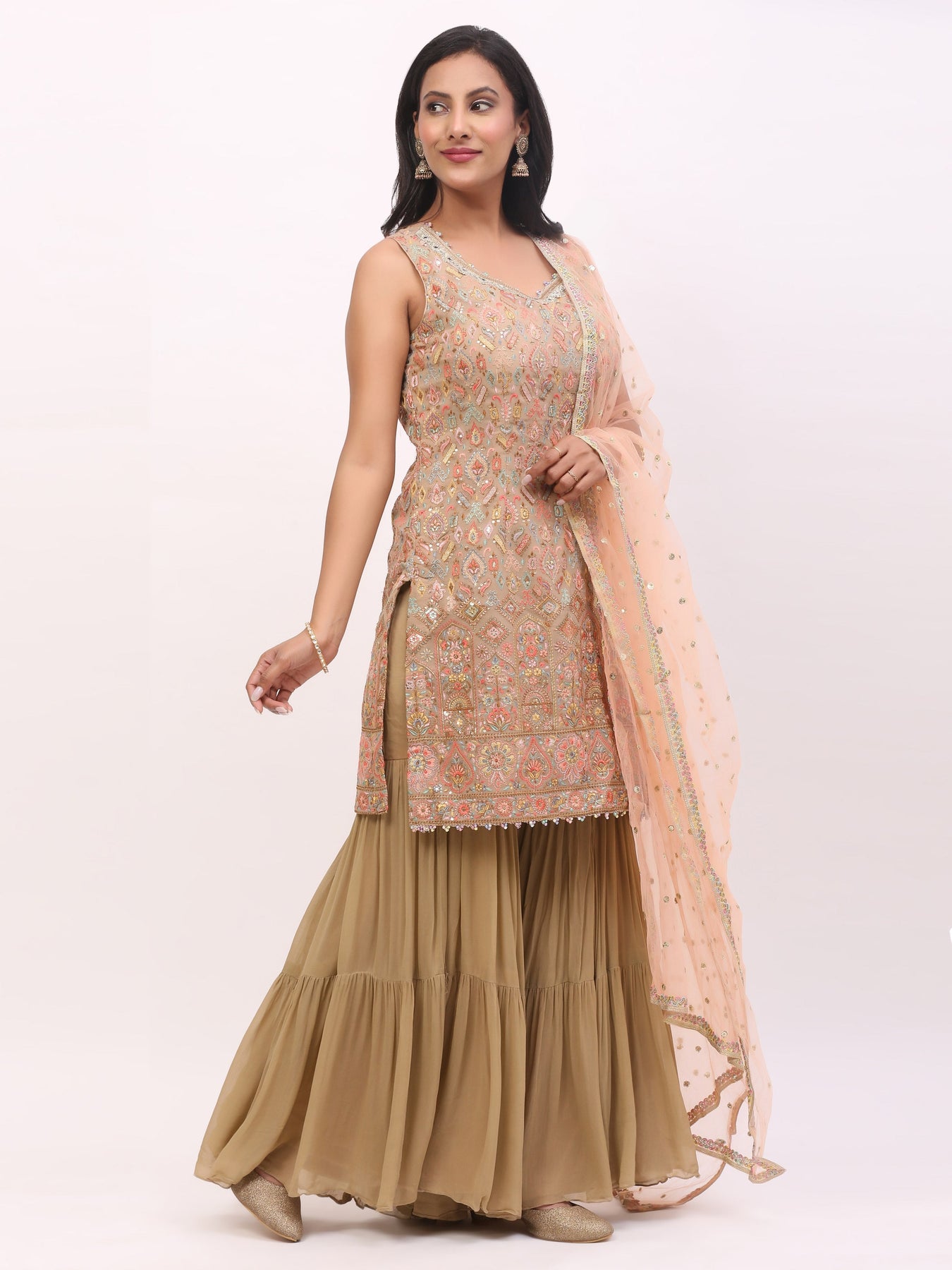 Peach Jaquard Garara suit