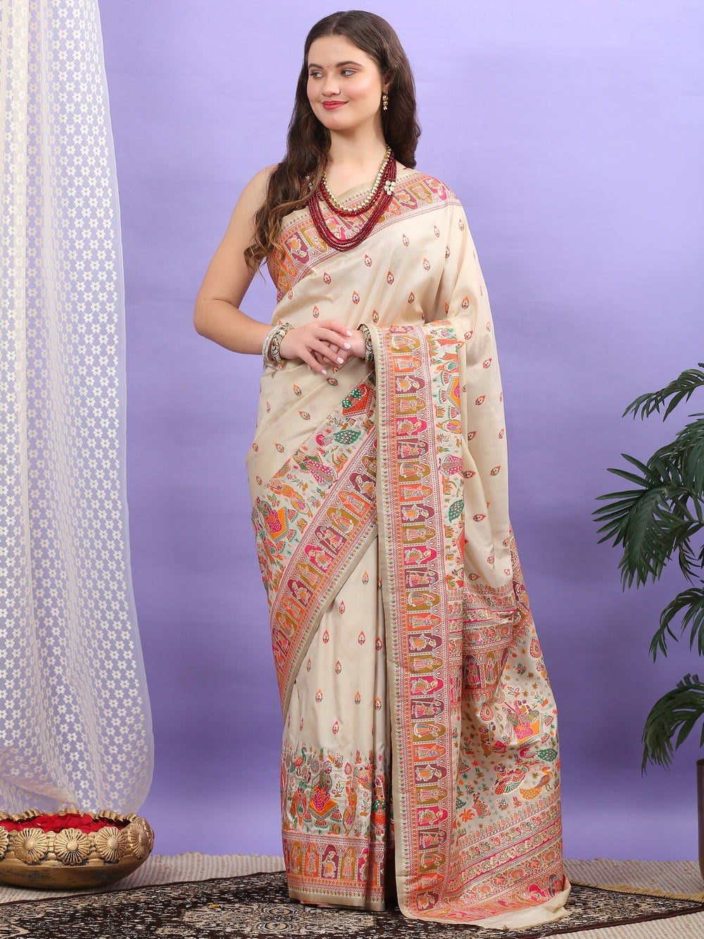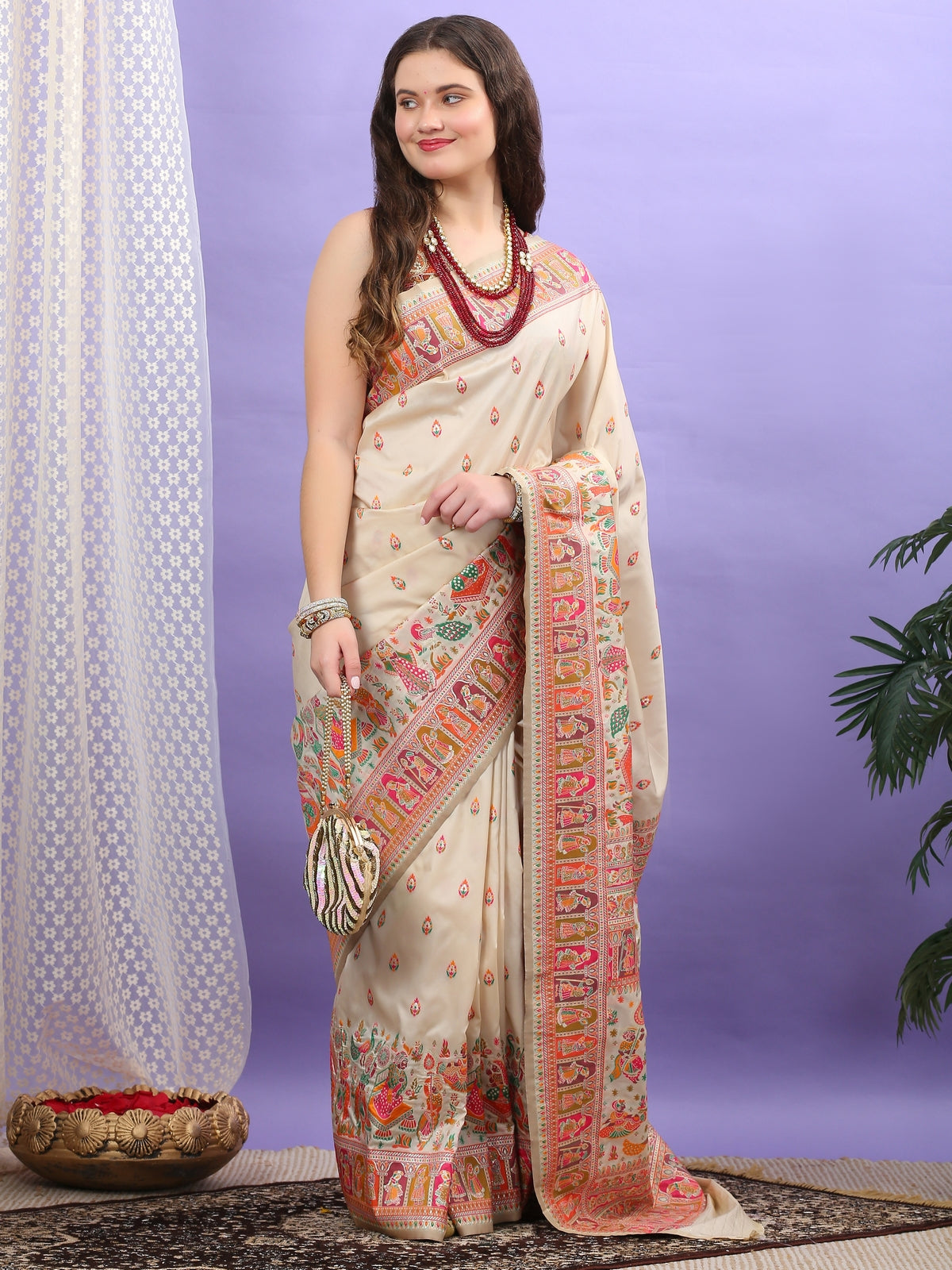 Beige Pashmina Silk Saree