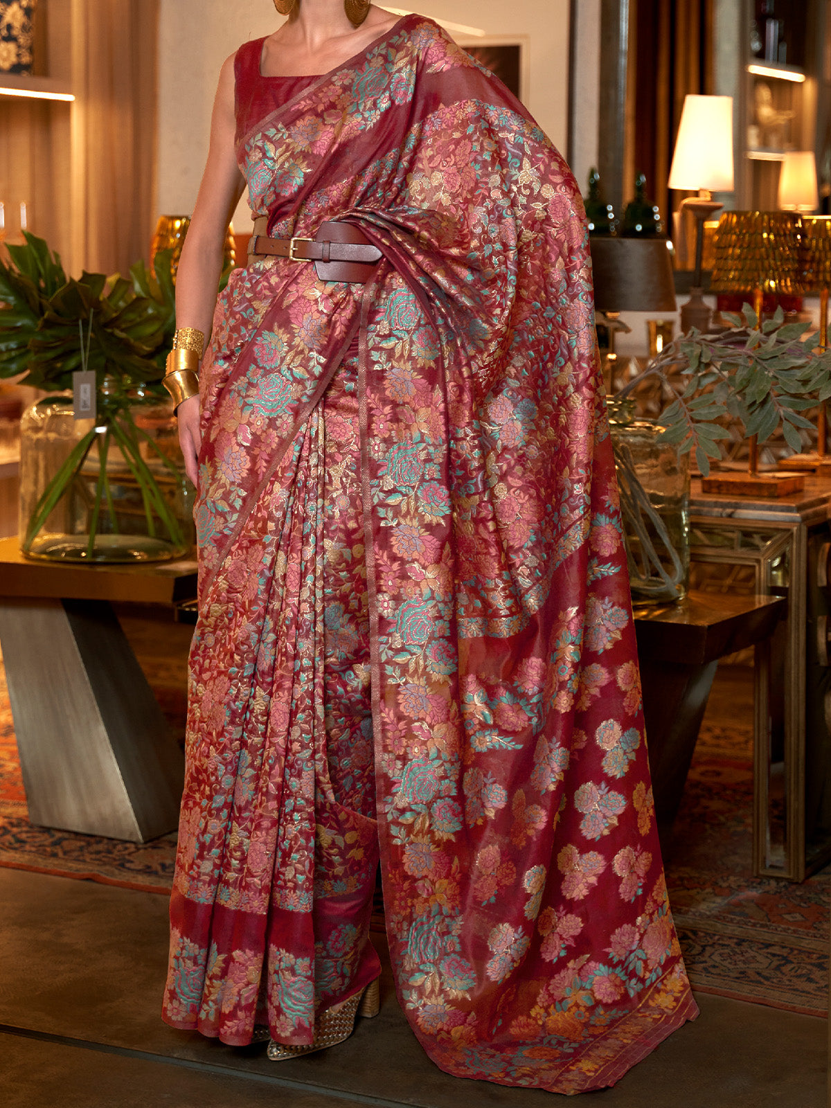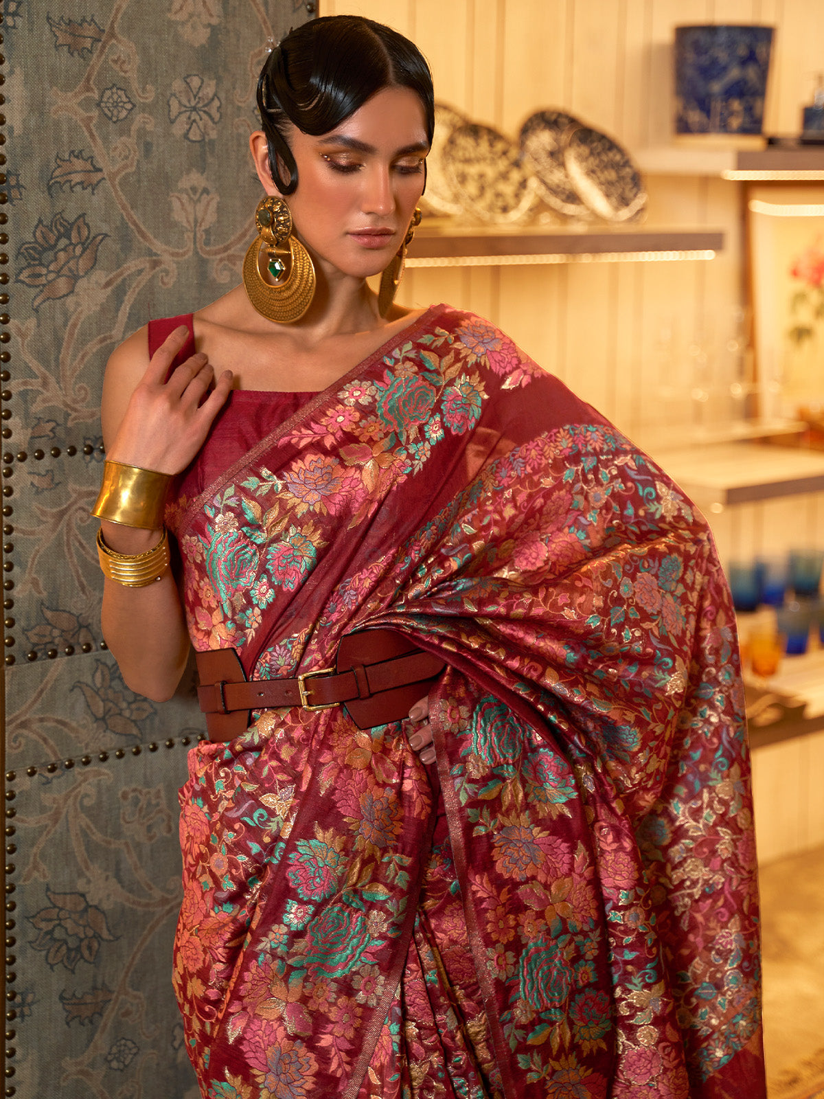 Exquisite Kashmiri work Modal Sarees with intricate weave for that traditional look.. This Saree exudes an elegance and showcases the mastery of the skilled artisans giving it a timeless appeal...The fabric drapes well and is enhanced by border and gorgeous Pallu..