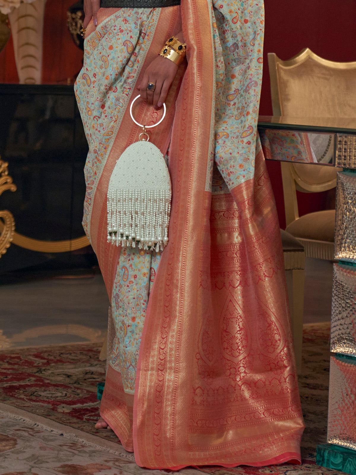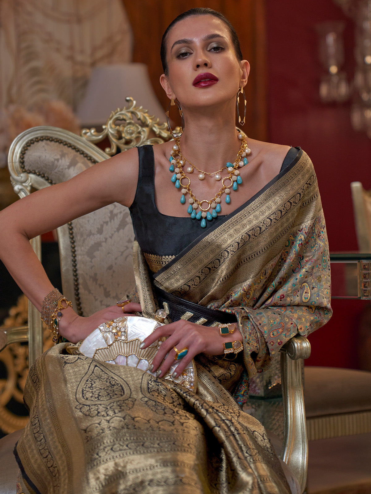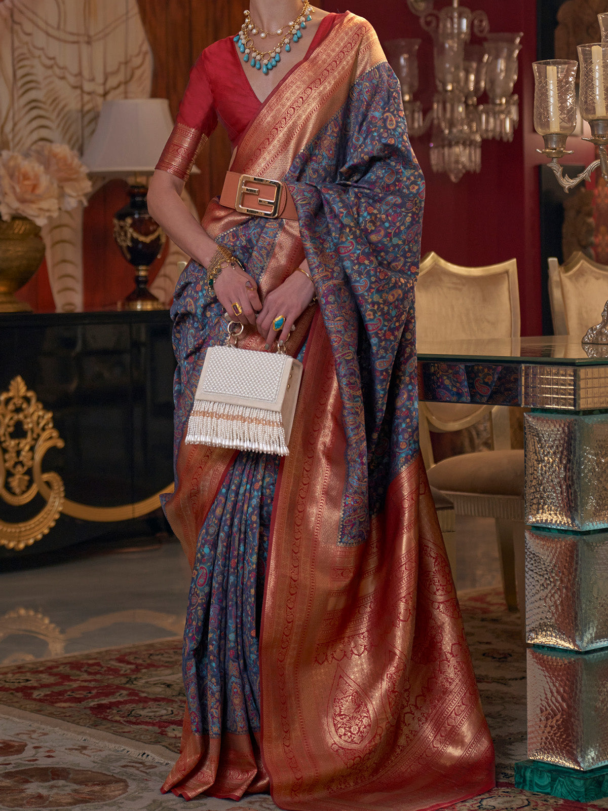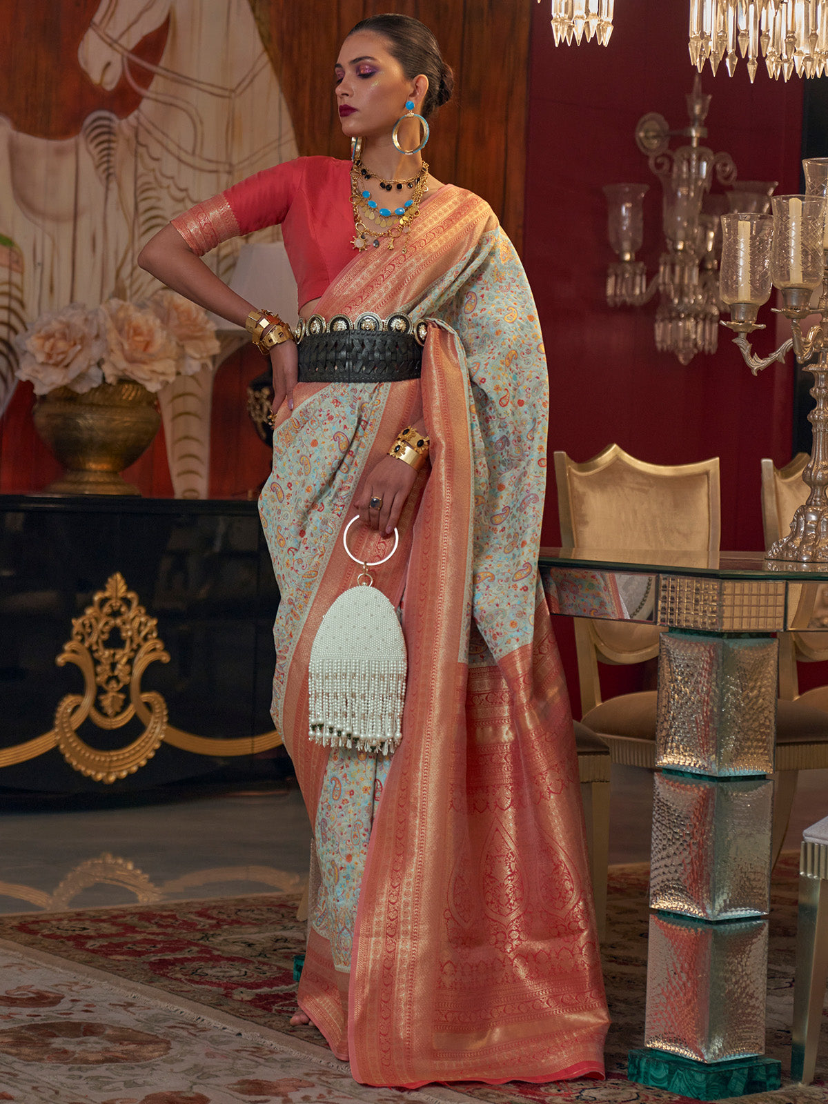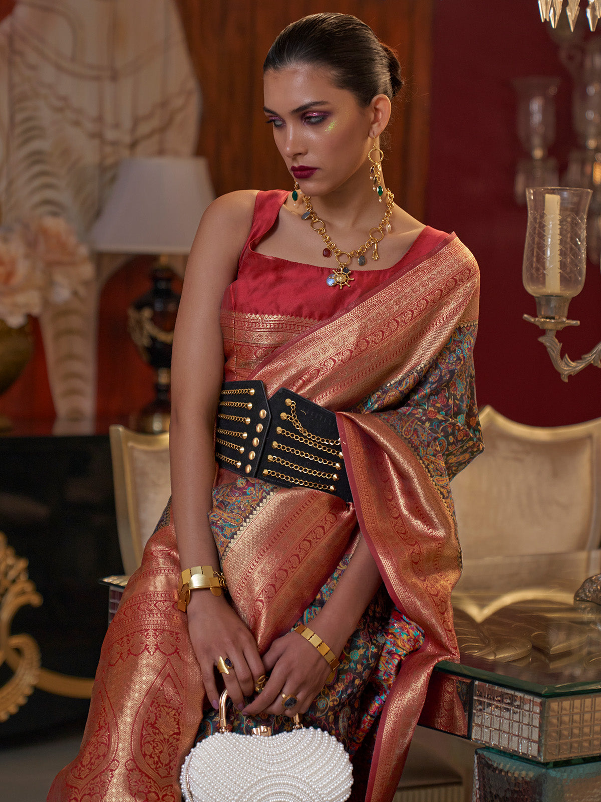 Exquisite Kashmiri work Modal Silk Sarees with intricate weave for that traditional look.. This Saree exudes an elegance and showcases the mastery of the skilled artisans giving it a timeless appeal...The fabric drapes well and is enhanced by contrast border and gorgeous Pallu..