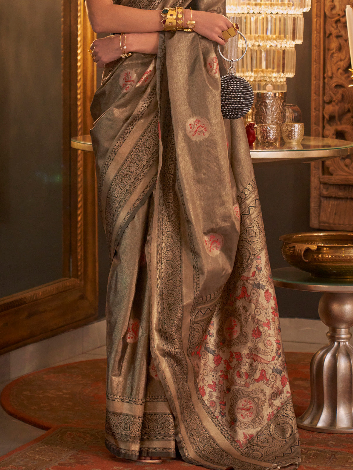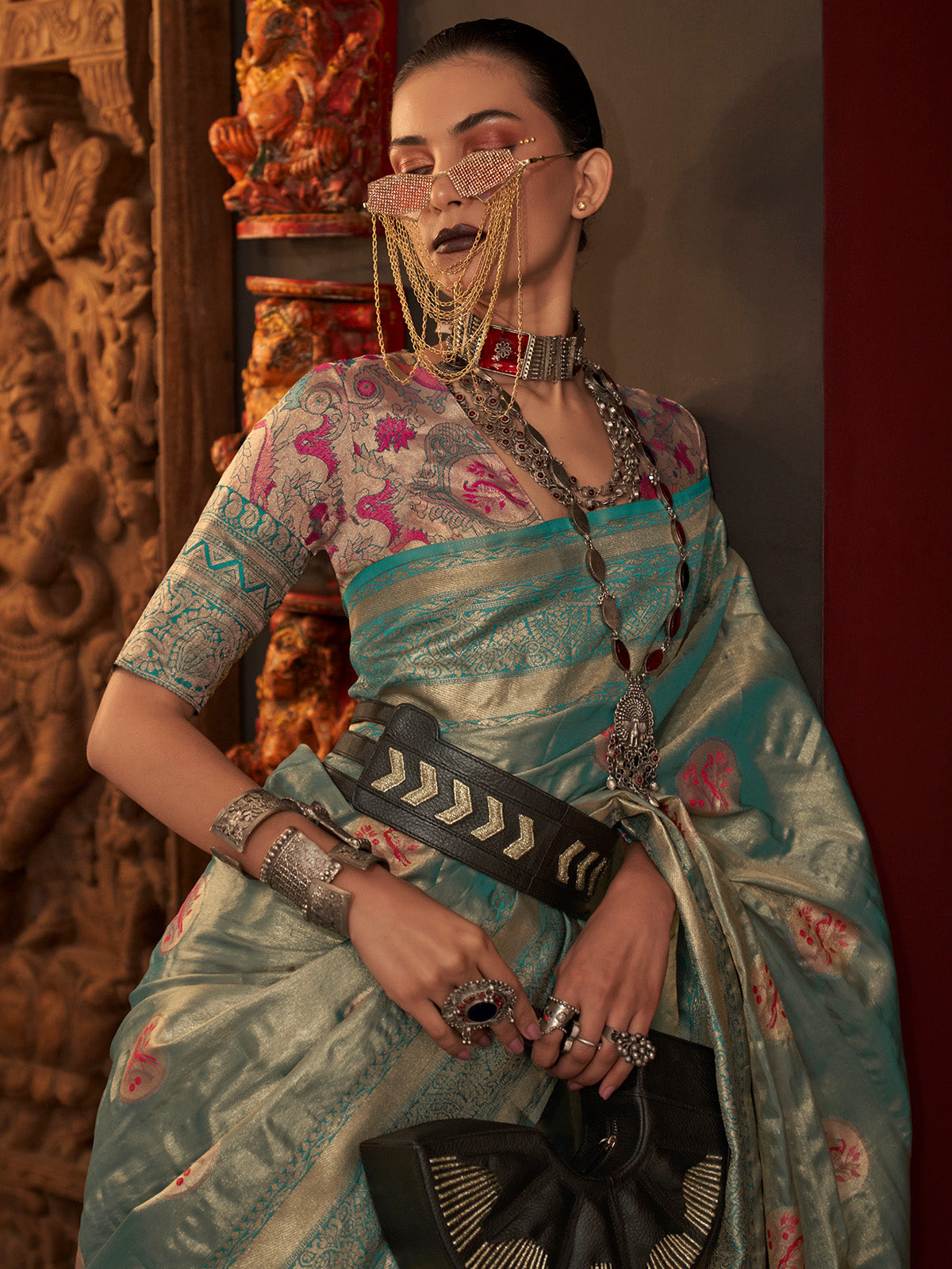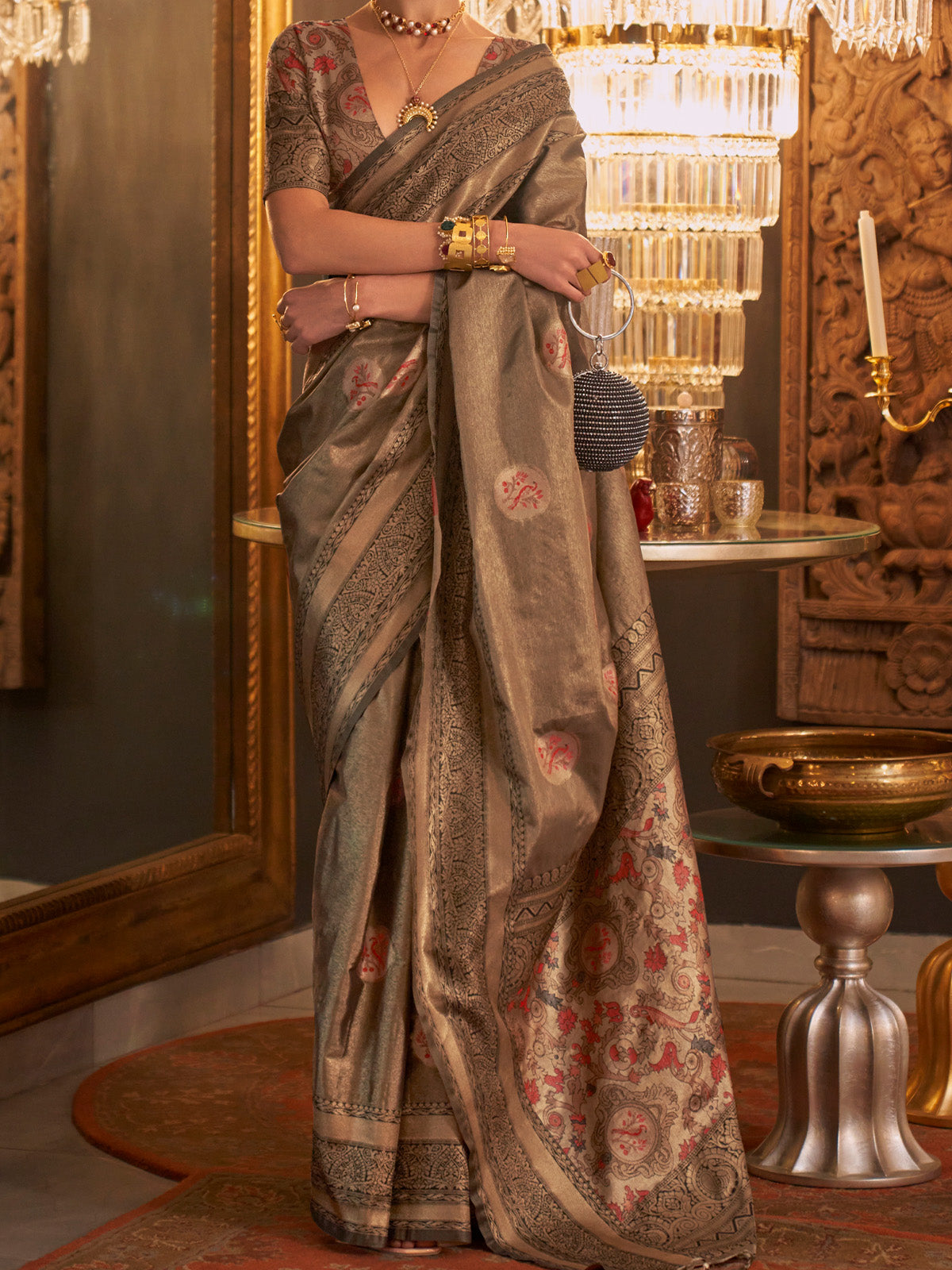 Exquisite Kashmiri work Modal Silk Sarees with intricate weave for that traditional look.. This Saree exudes an elegance and showcases the mastery of the skilled artisans giving it a timeless appeal...The fabric drapes well and is enhanced by a gorgeous Pallu and blouse piece..