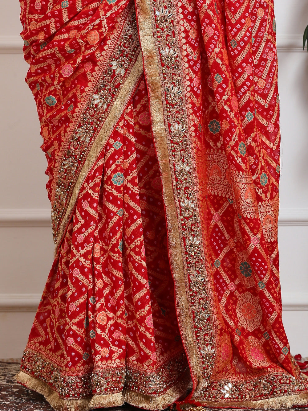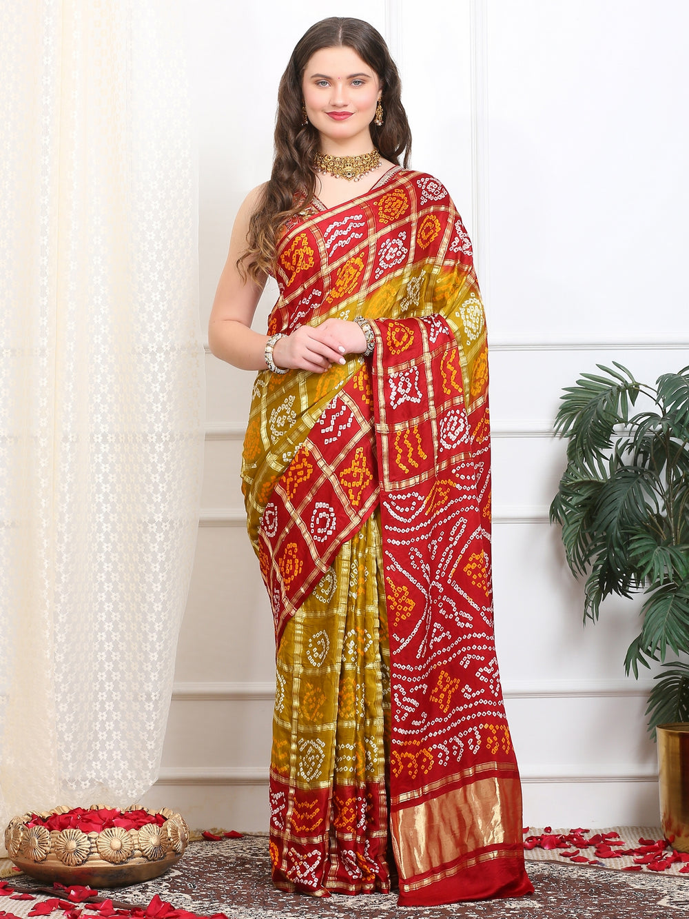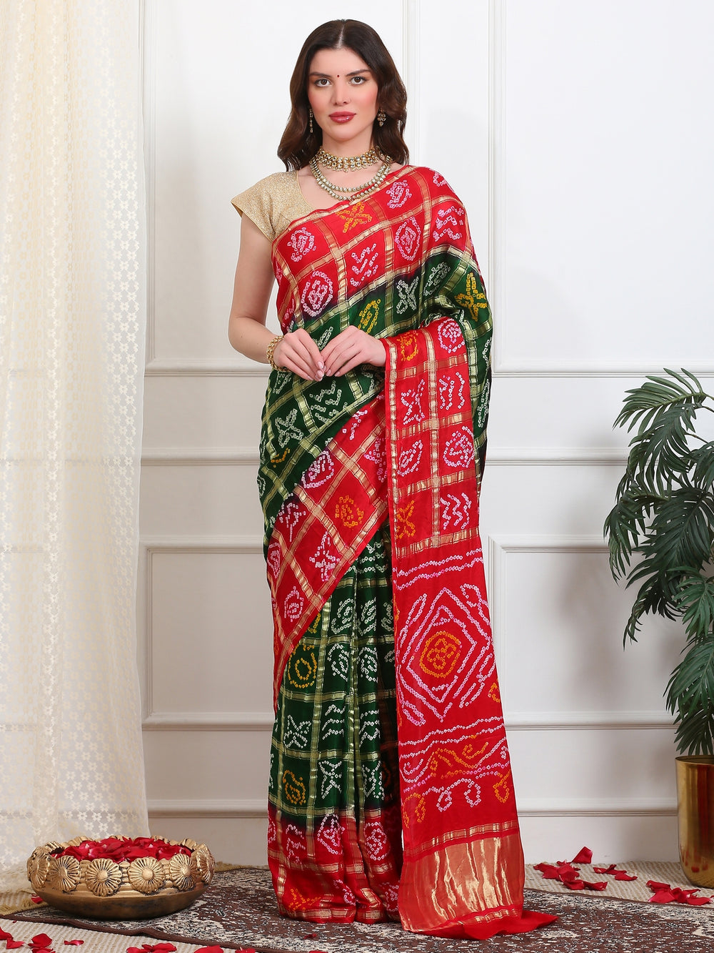 Olive & Red Gharchola Saree