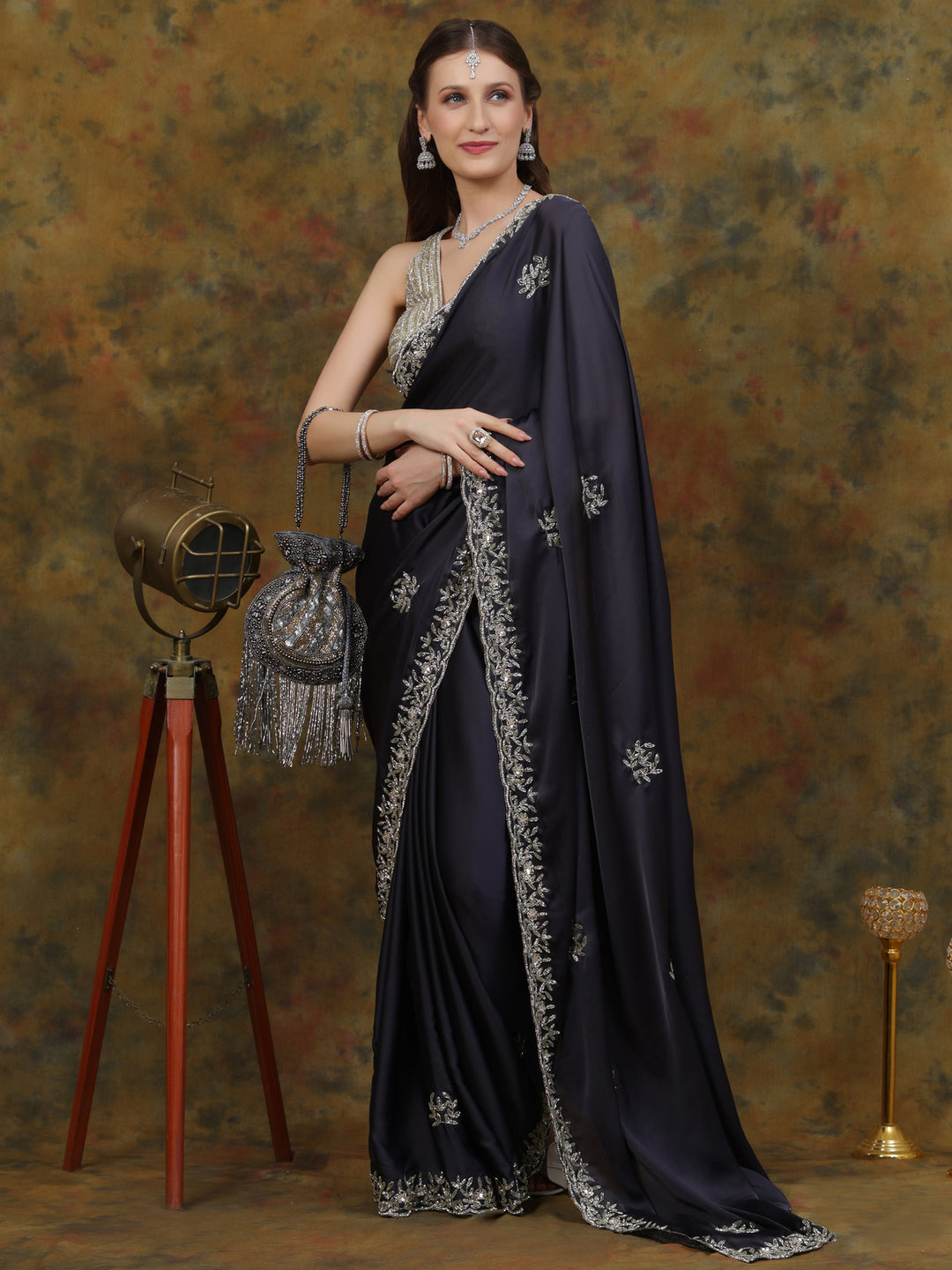 Steel Grey Satin Silk Saree