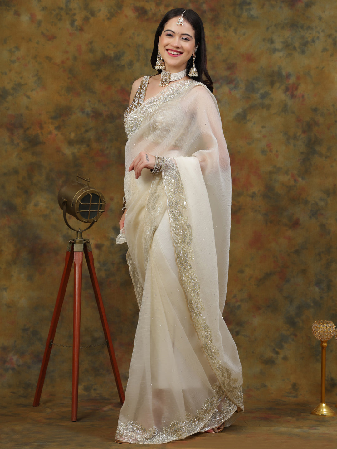 Ivory Crepe Chiffon Saree