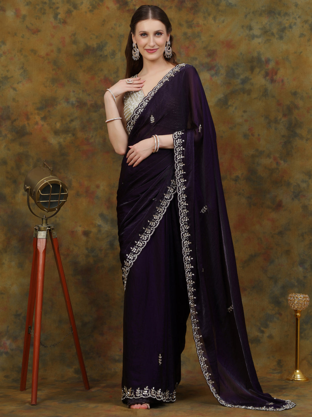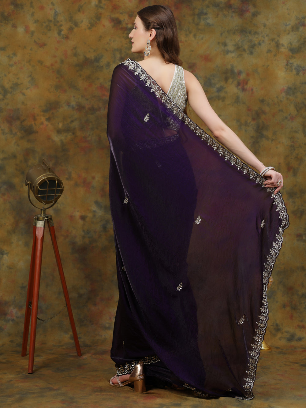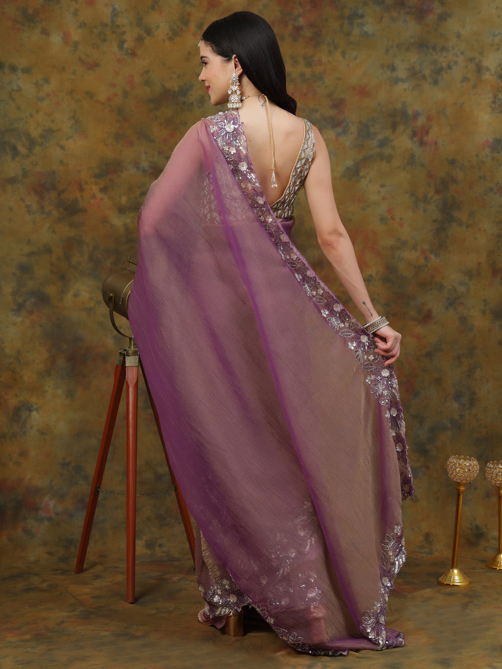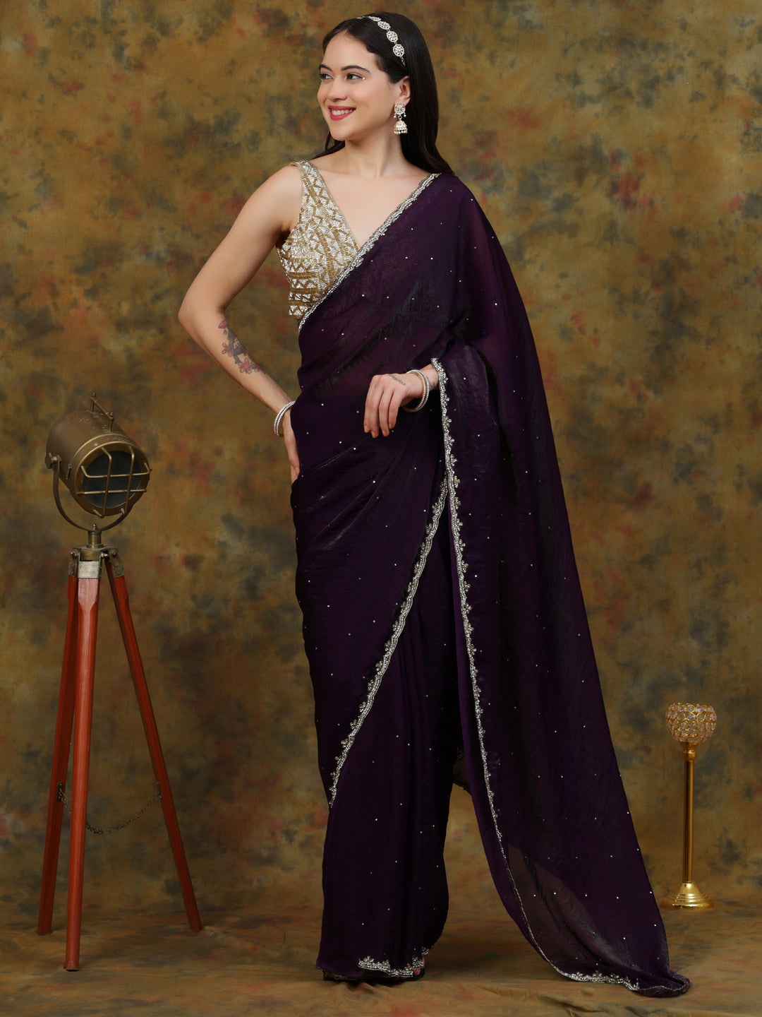 Deep Violet Satin Tissue Saree