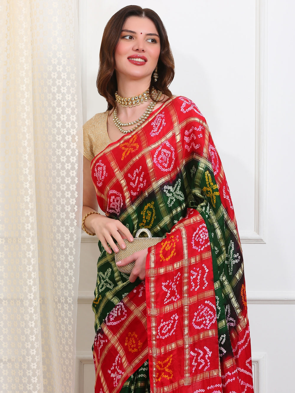 Green & Red Gharchola Saree