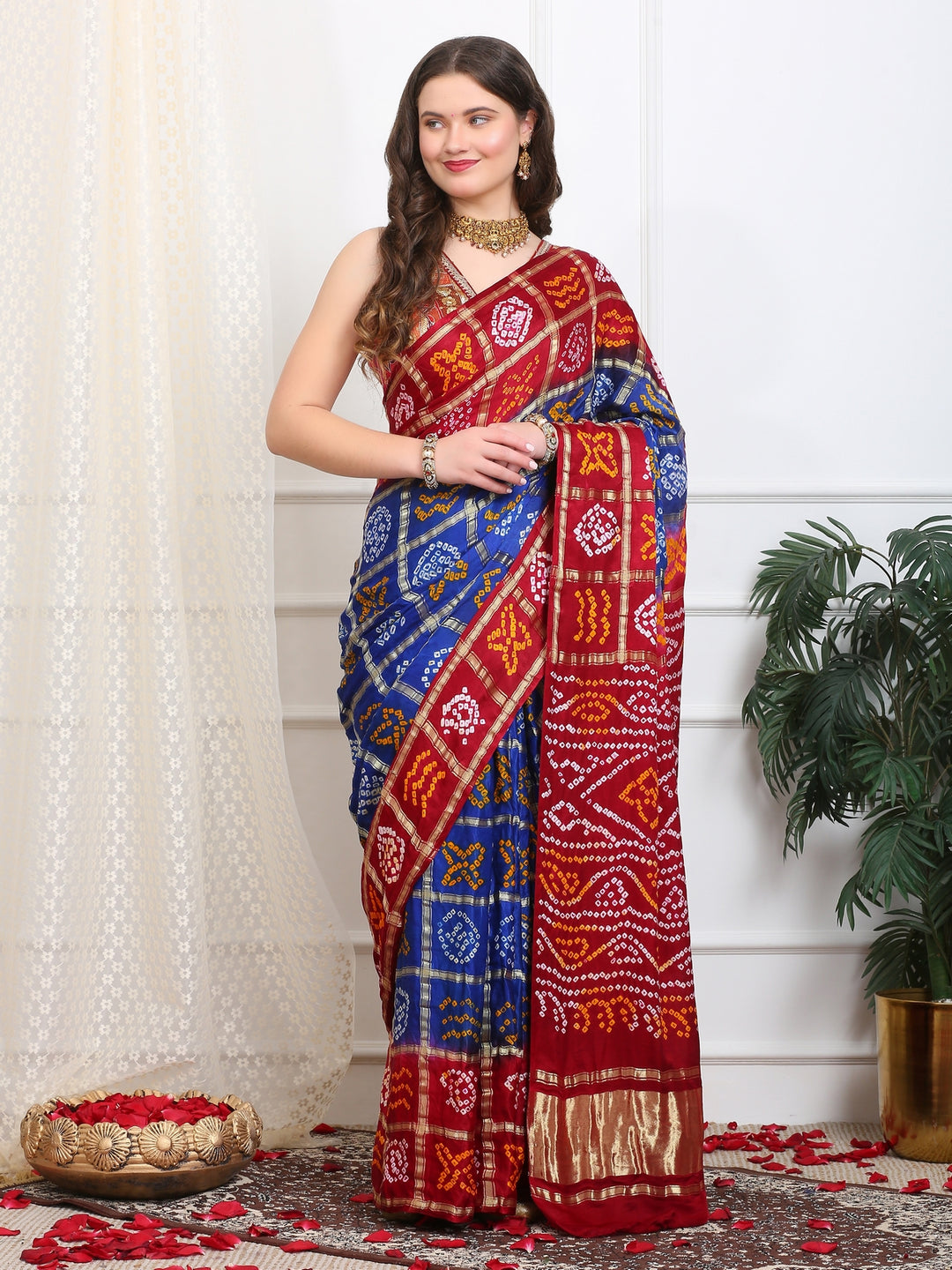 Red & Blue Gharchola Saree