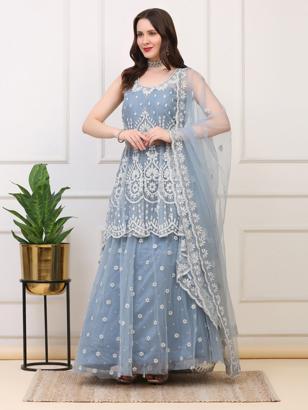 Icy Blue Fishtail Lehenga Skirt