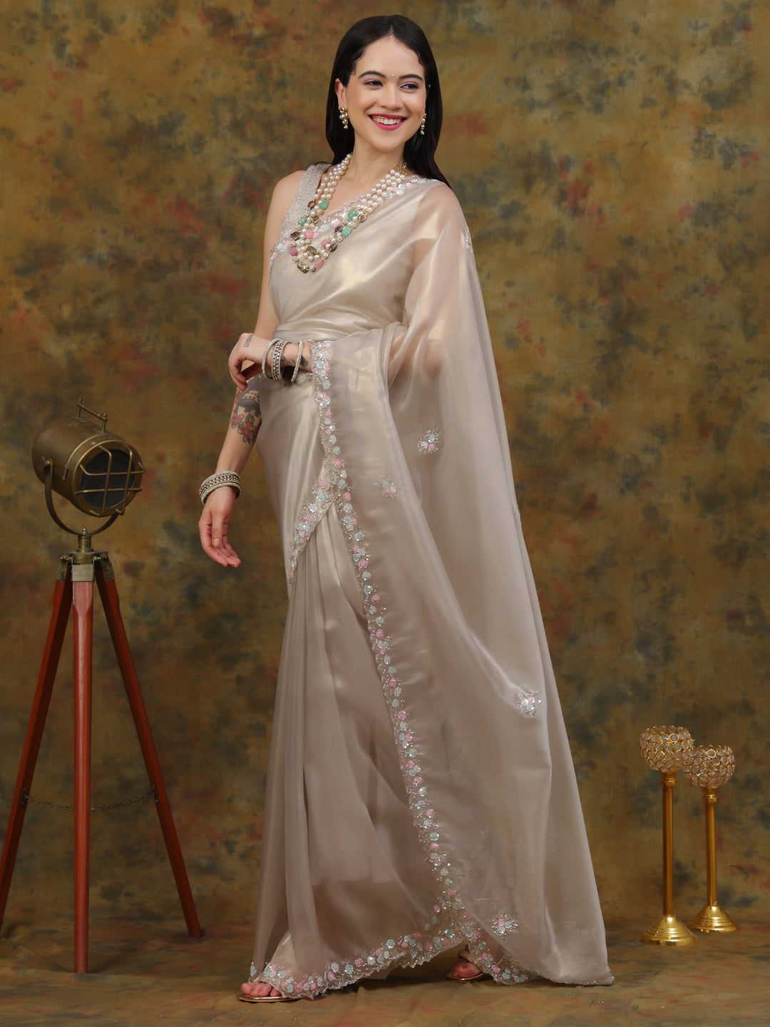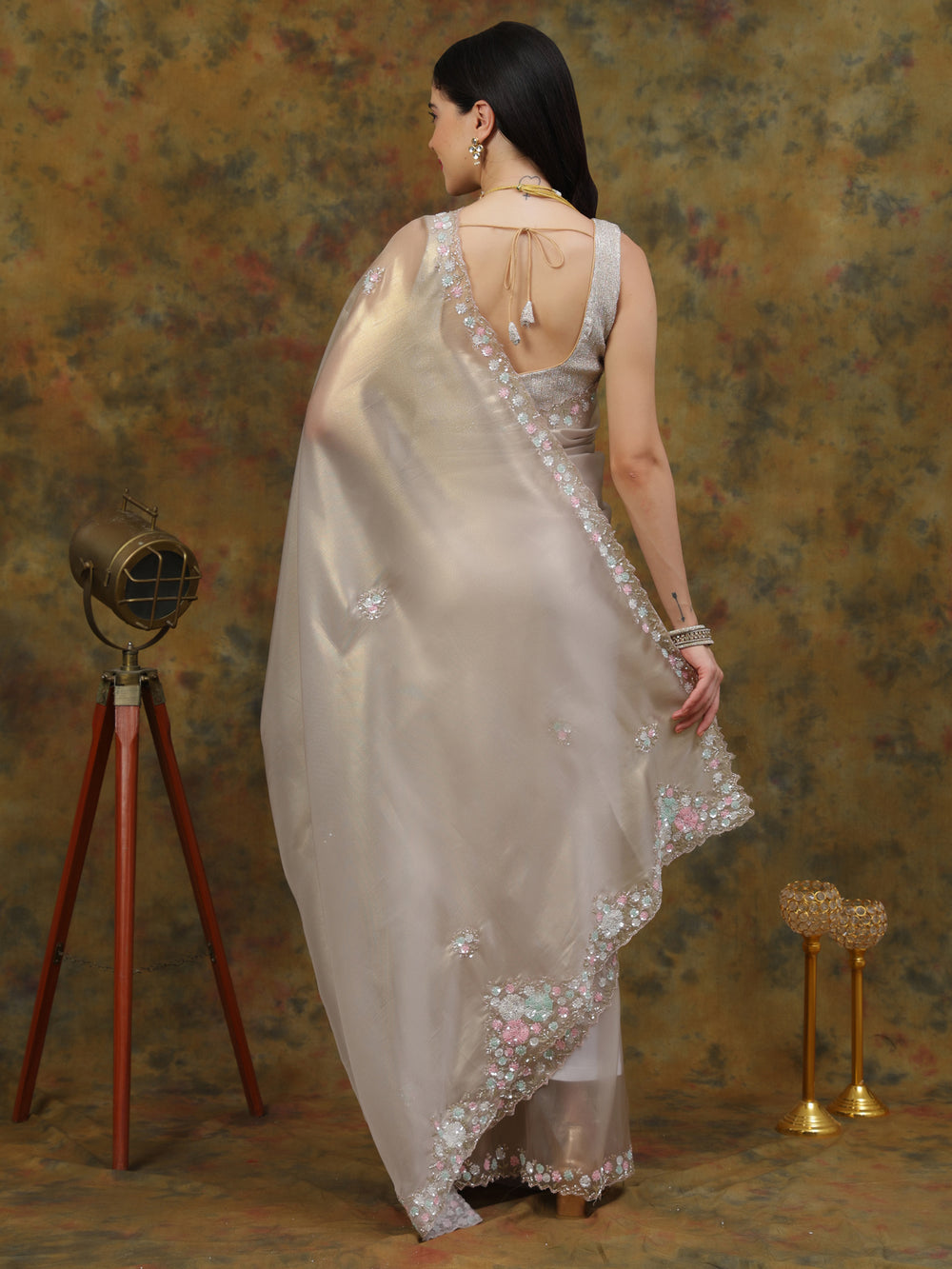 Silver Organza Tissue Saree