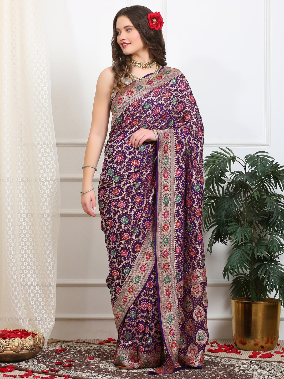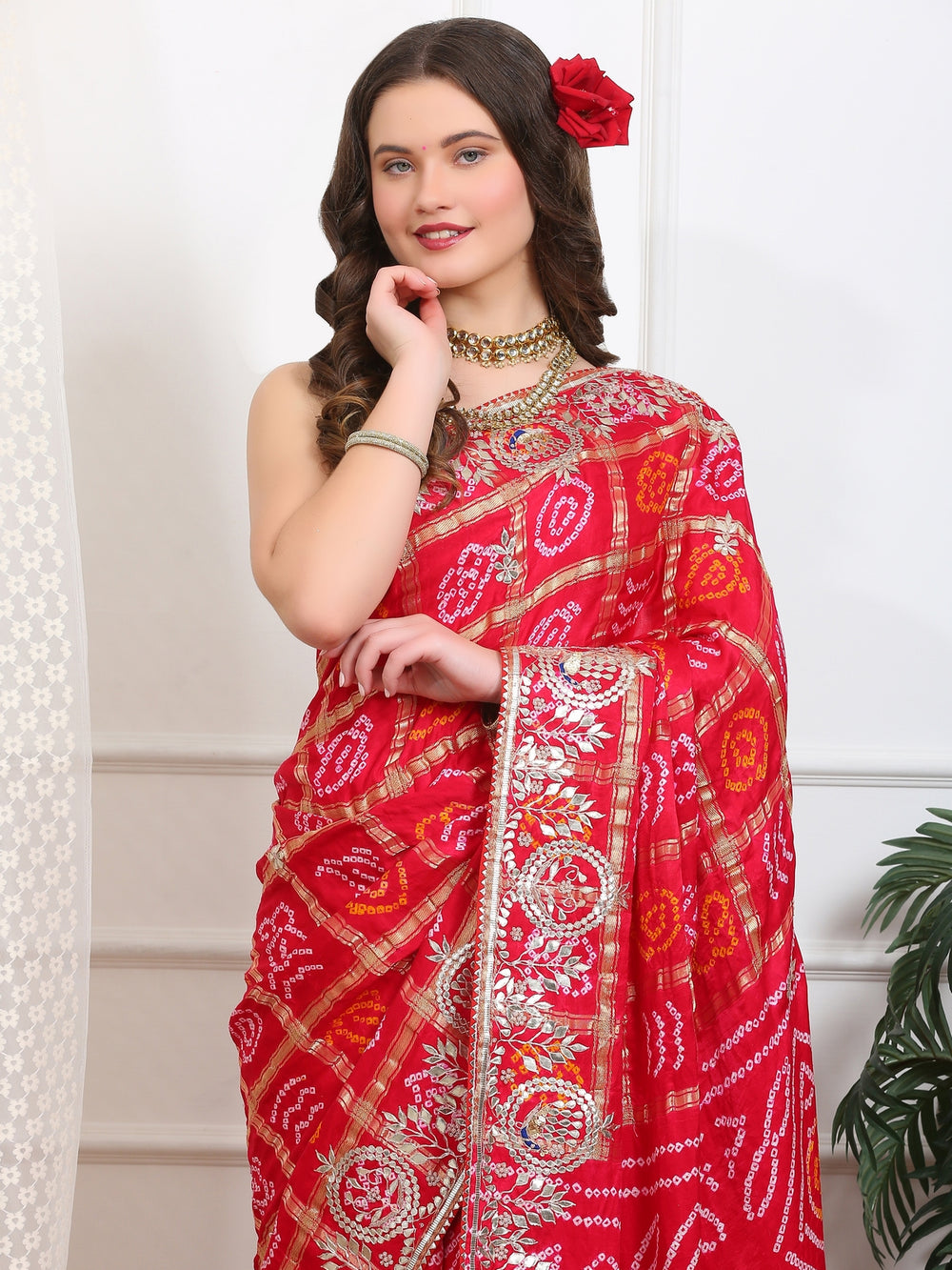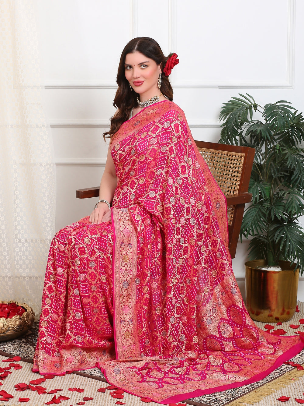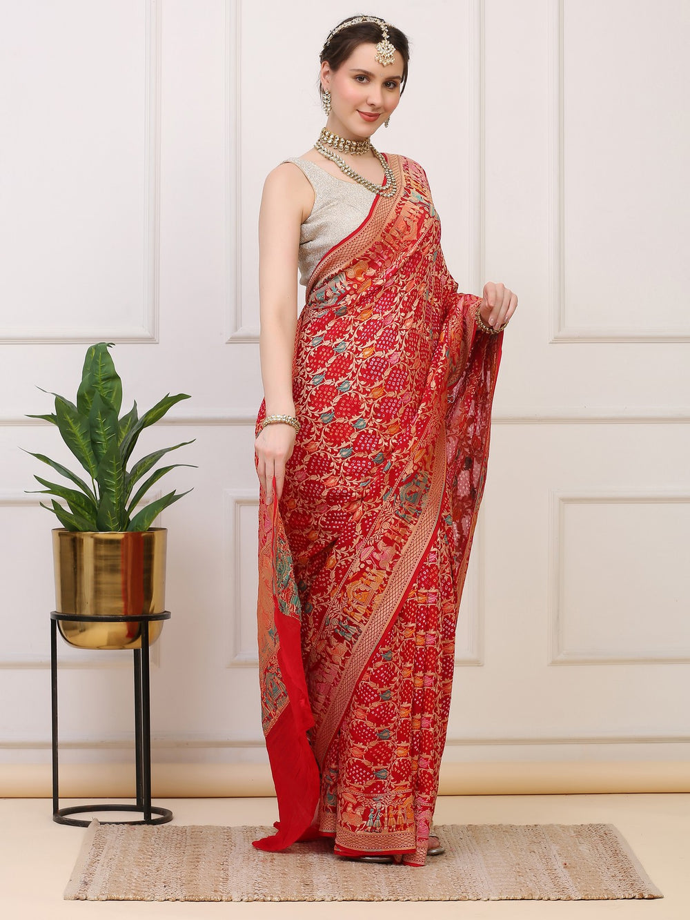 Royal Red Khaddi Georgette Bandhej Saree