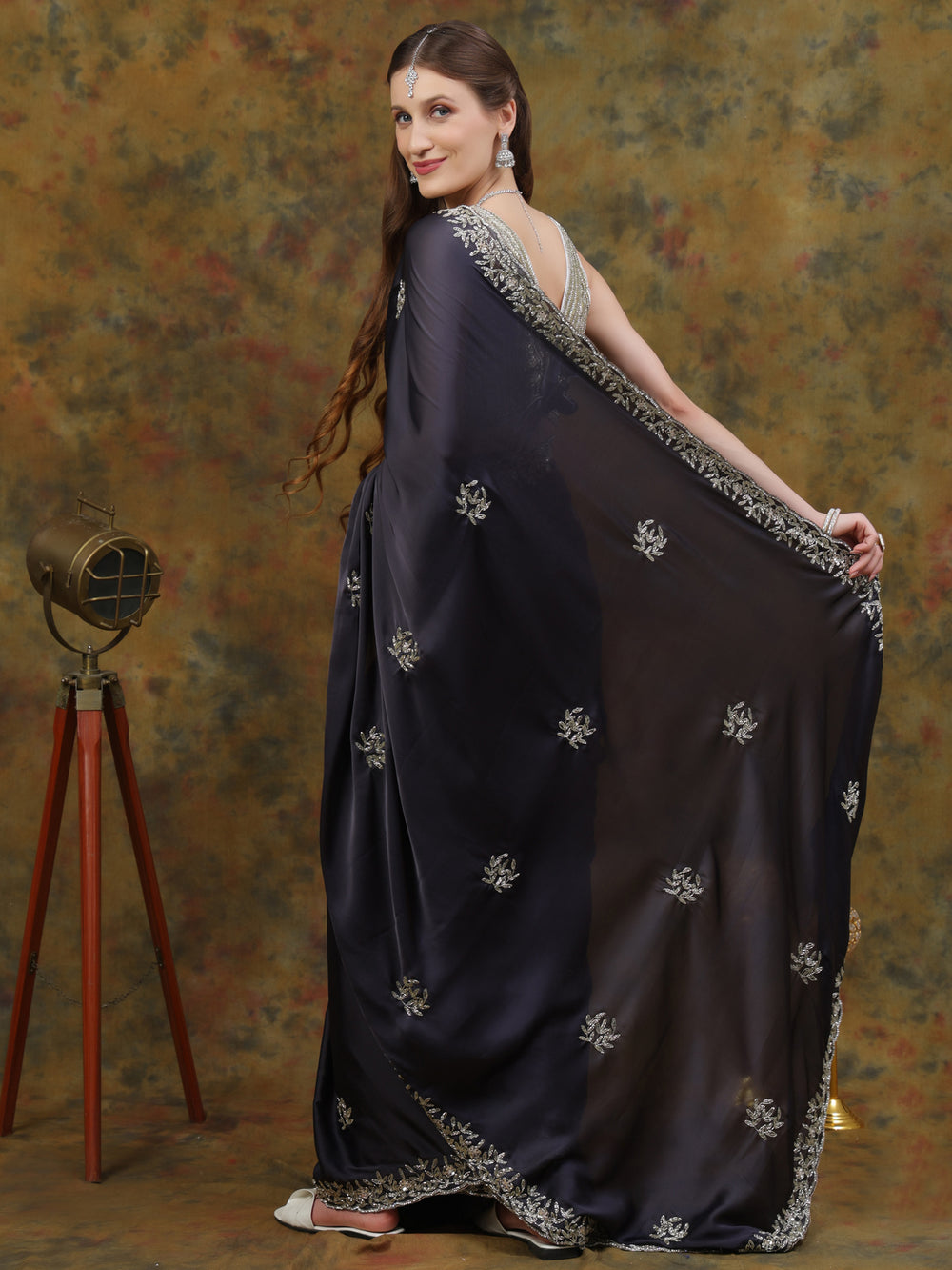 Charcoal Grey Crepe Chiffon Saree
