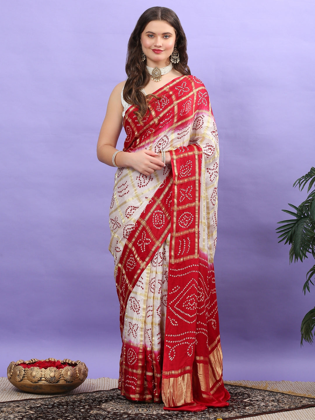 Ivory & Red Gharchola Saree