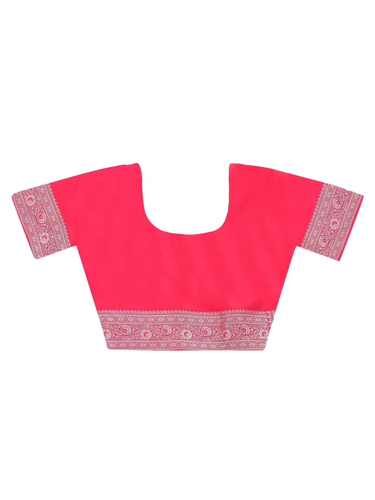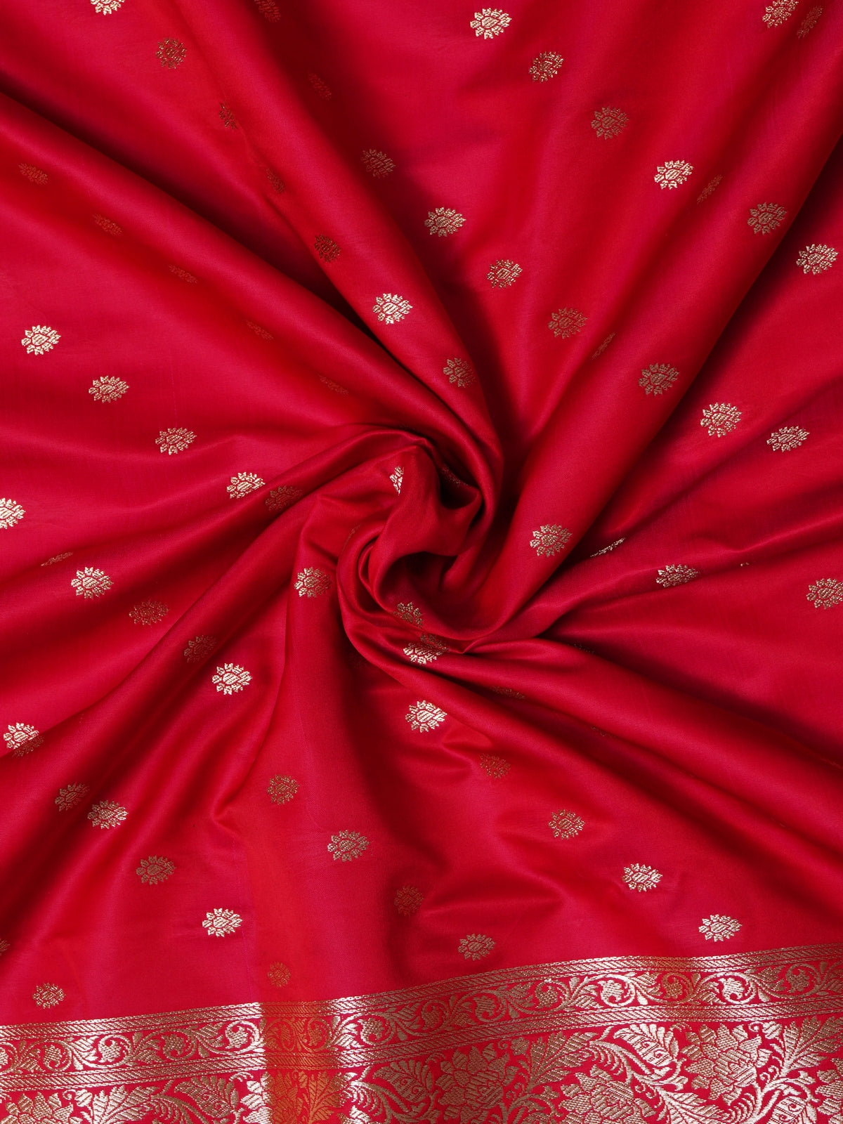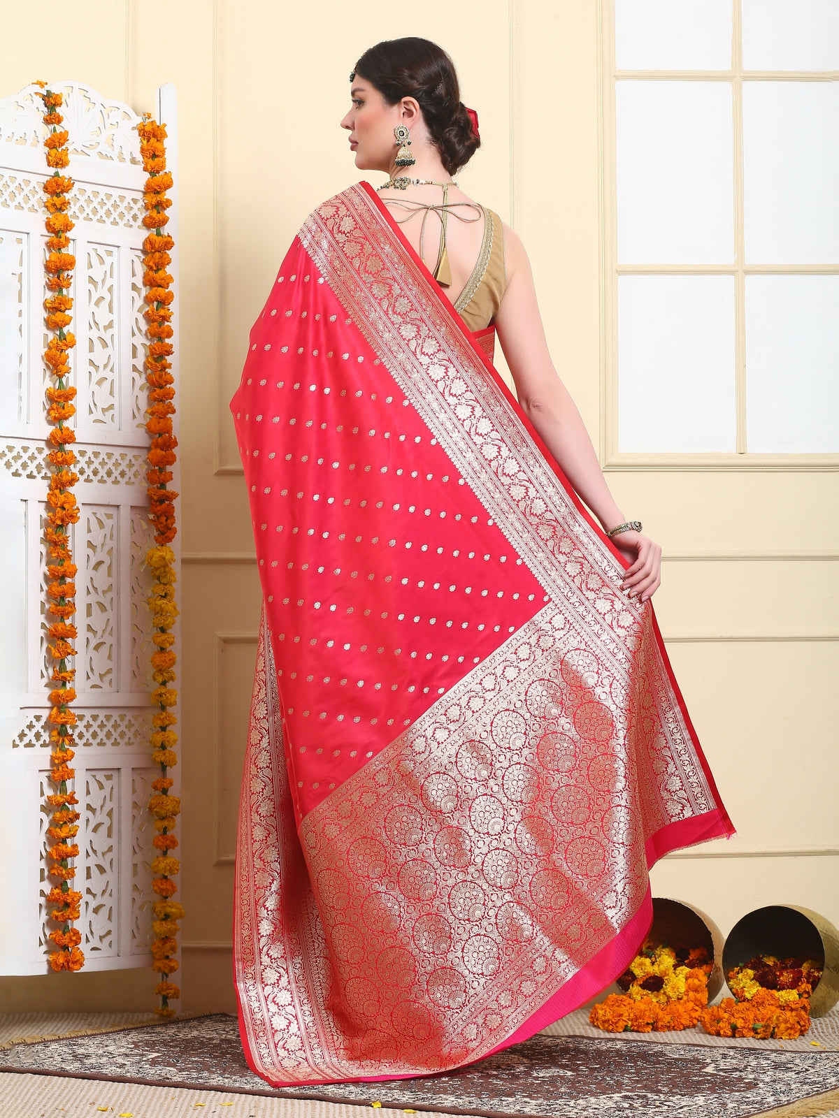 The elegant charm of Banarasi Sarees is unmatched as they display traditional weaves in contemporary style.. Woven with all over butti and enhanced with heavy border and Pallu this two toned Saree is a timeless treasure which showcases the skillfull craftsmanship of our weavers making it ideal for wedding and Bridal wear..