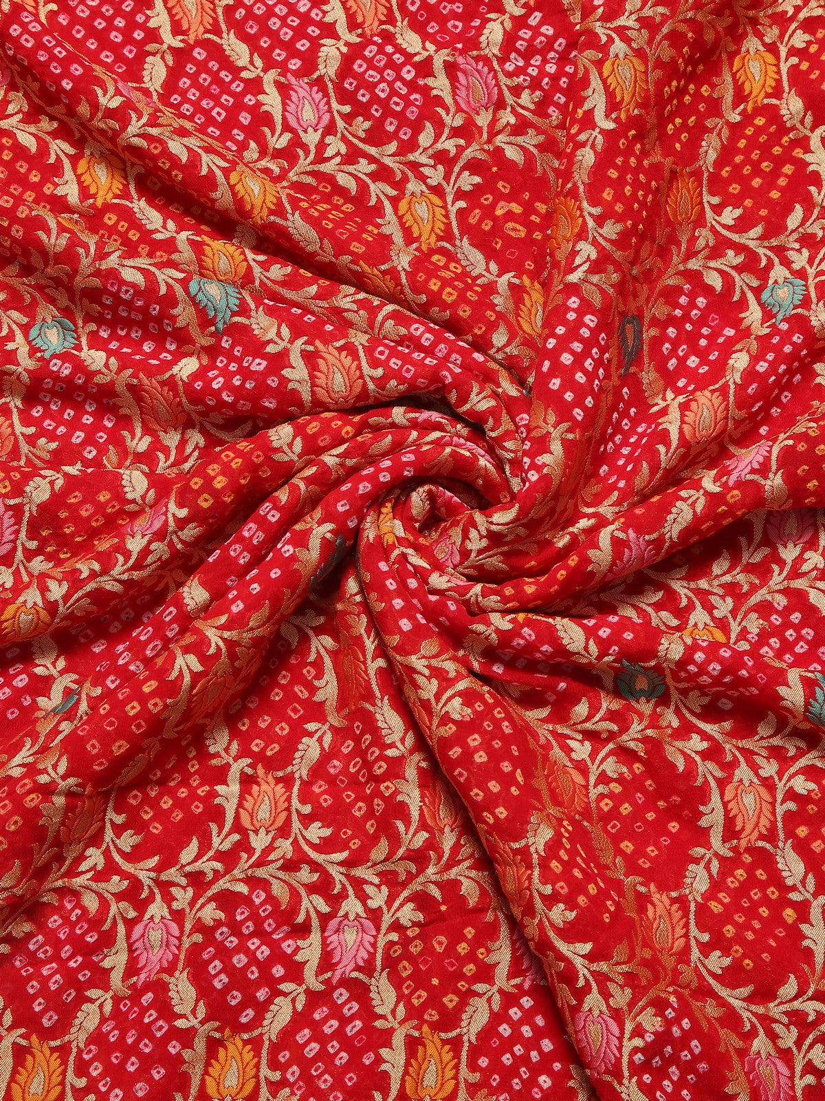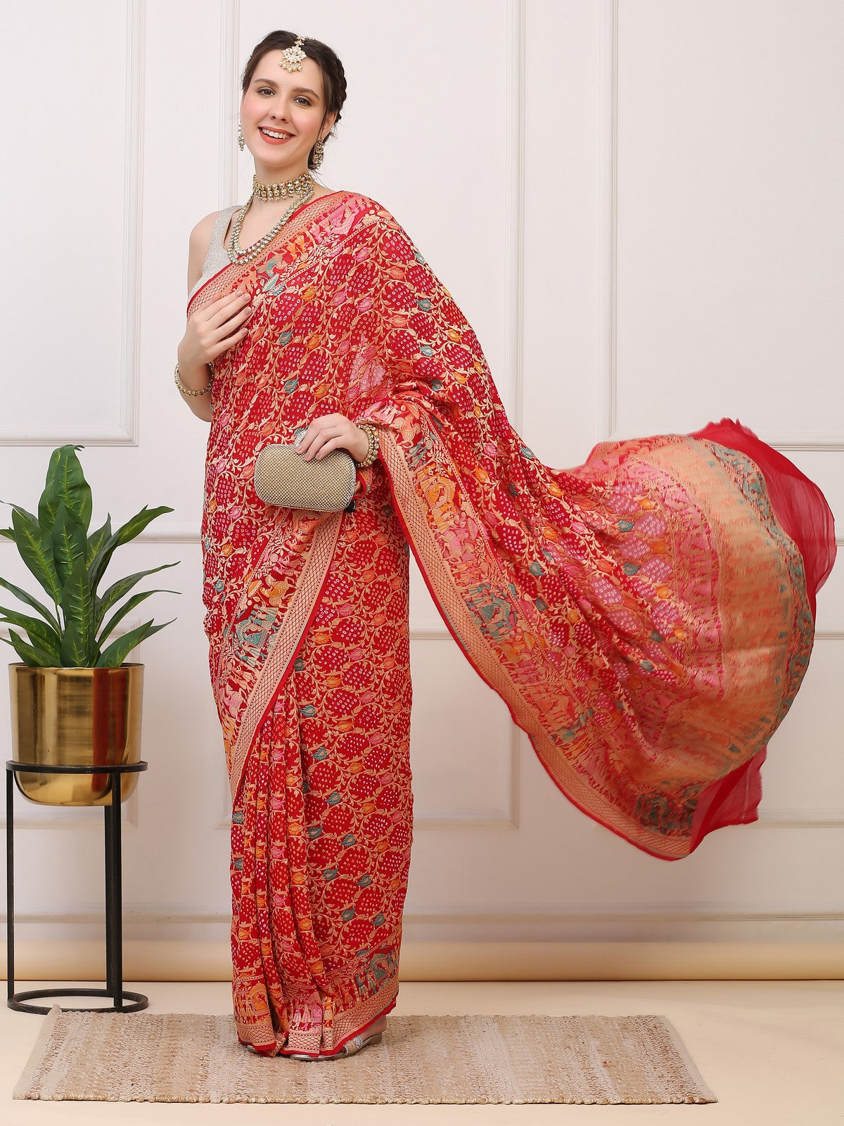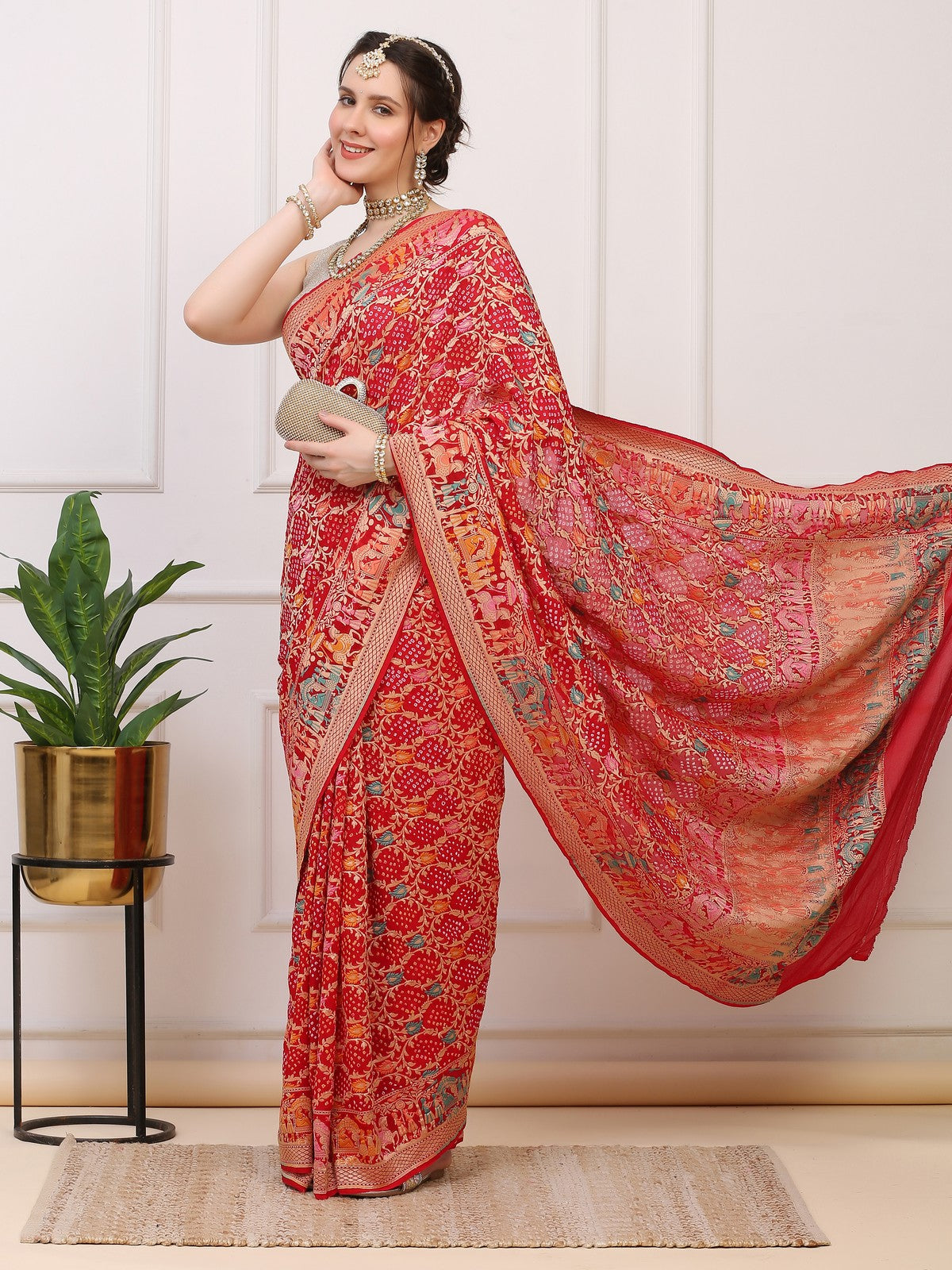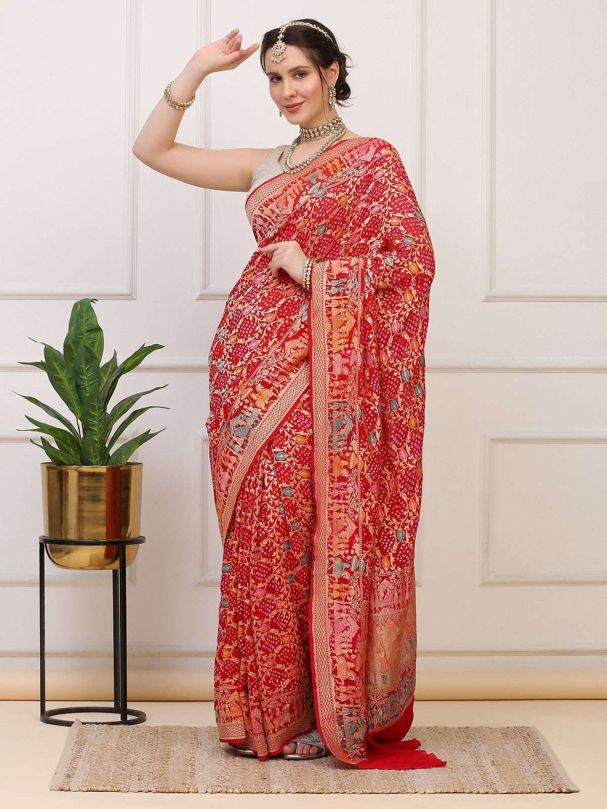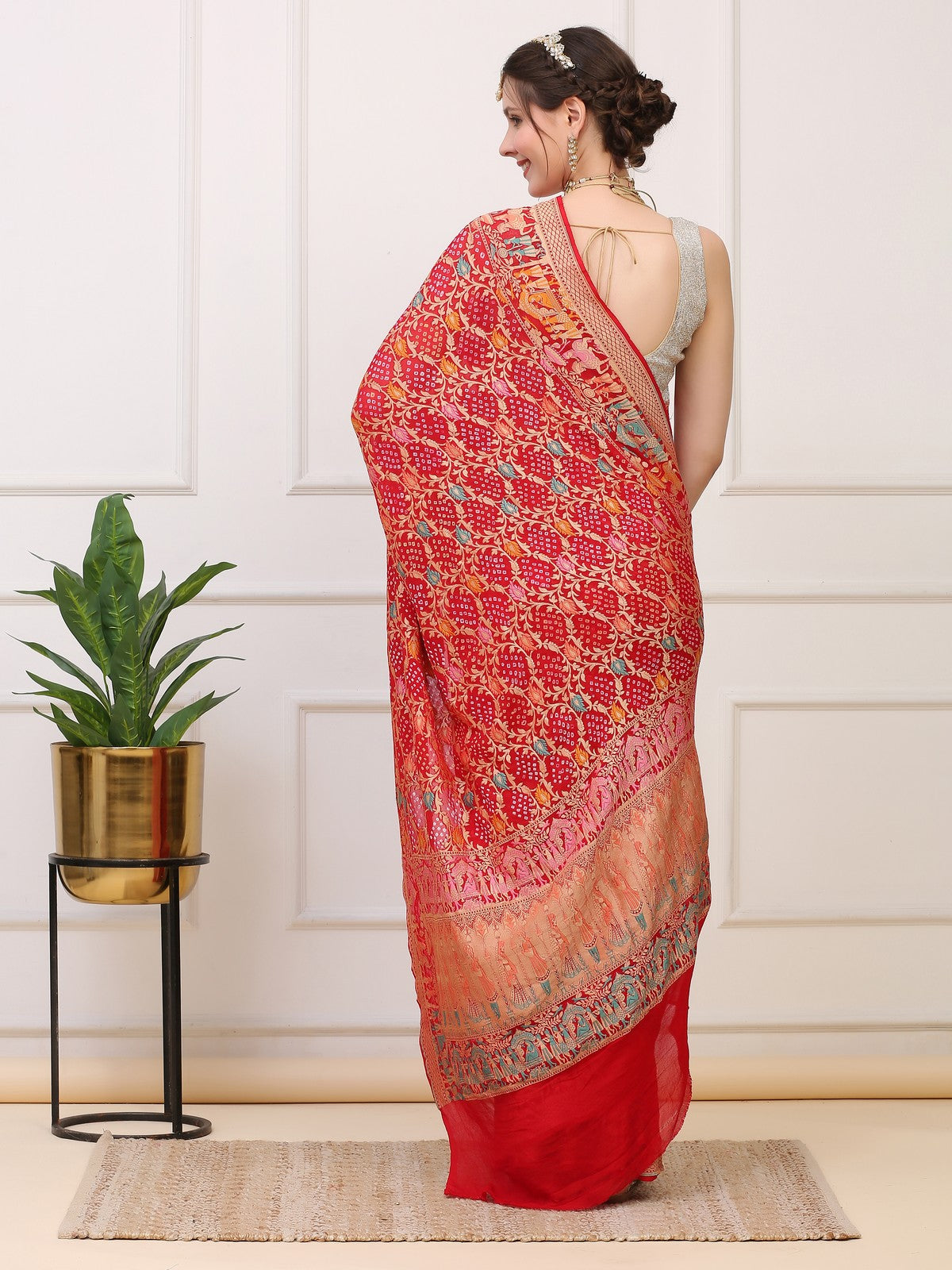 Red Khaddi Georgette Banarasi Bhandej Saree