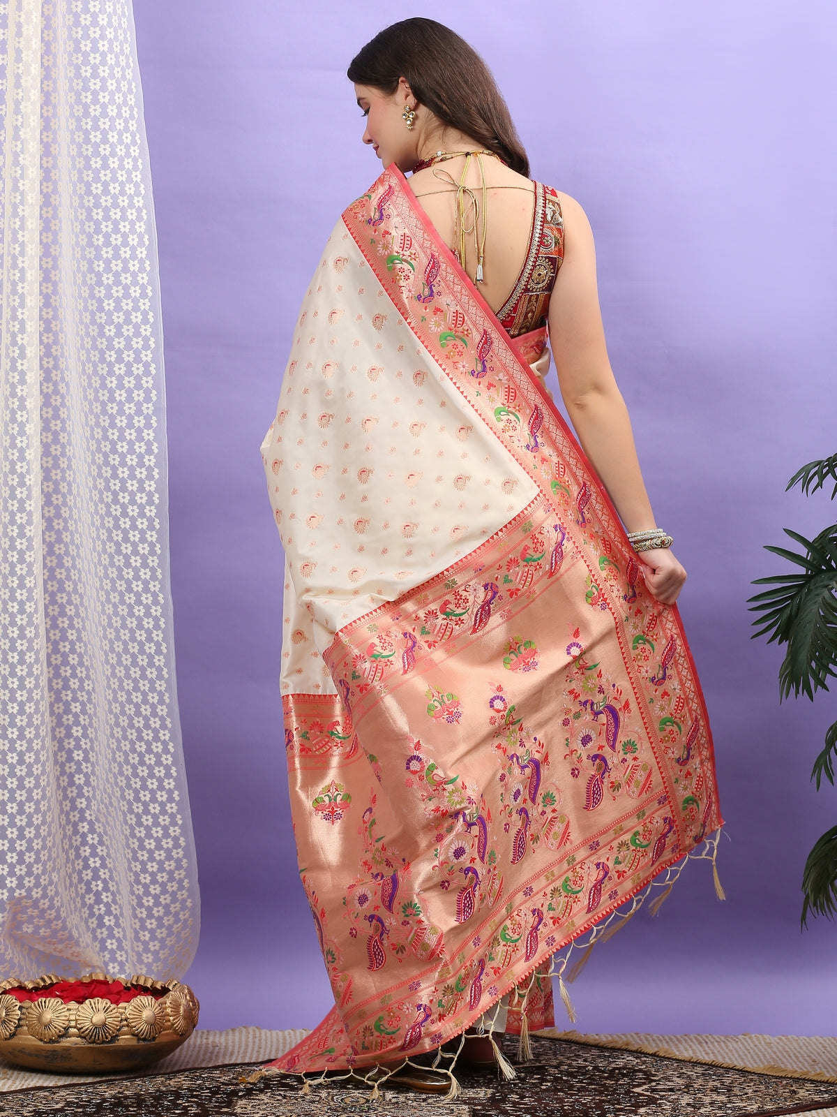 Cream Paithani Silk Saree