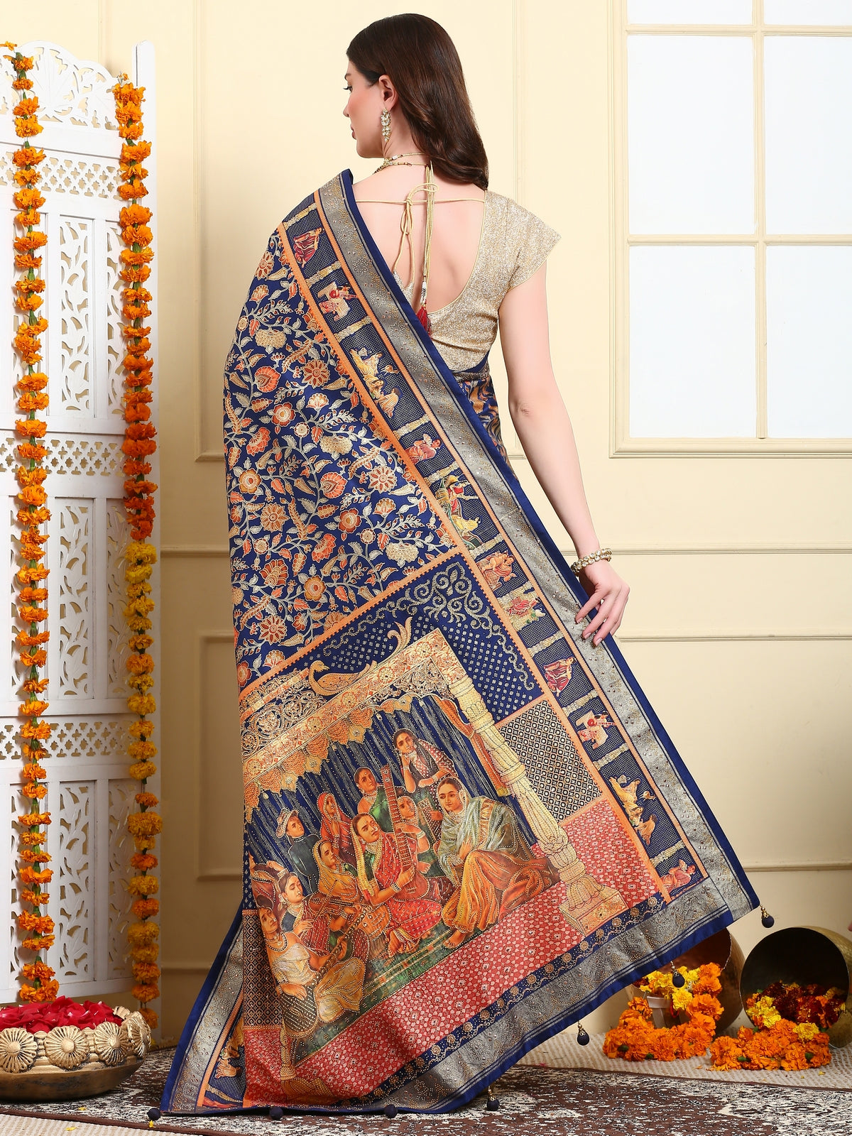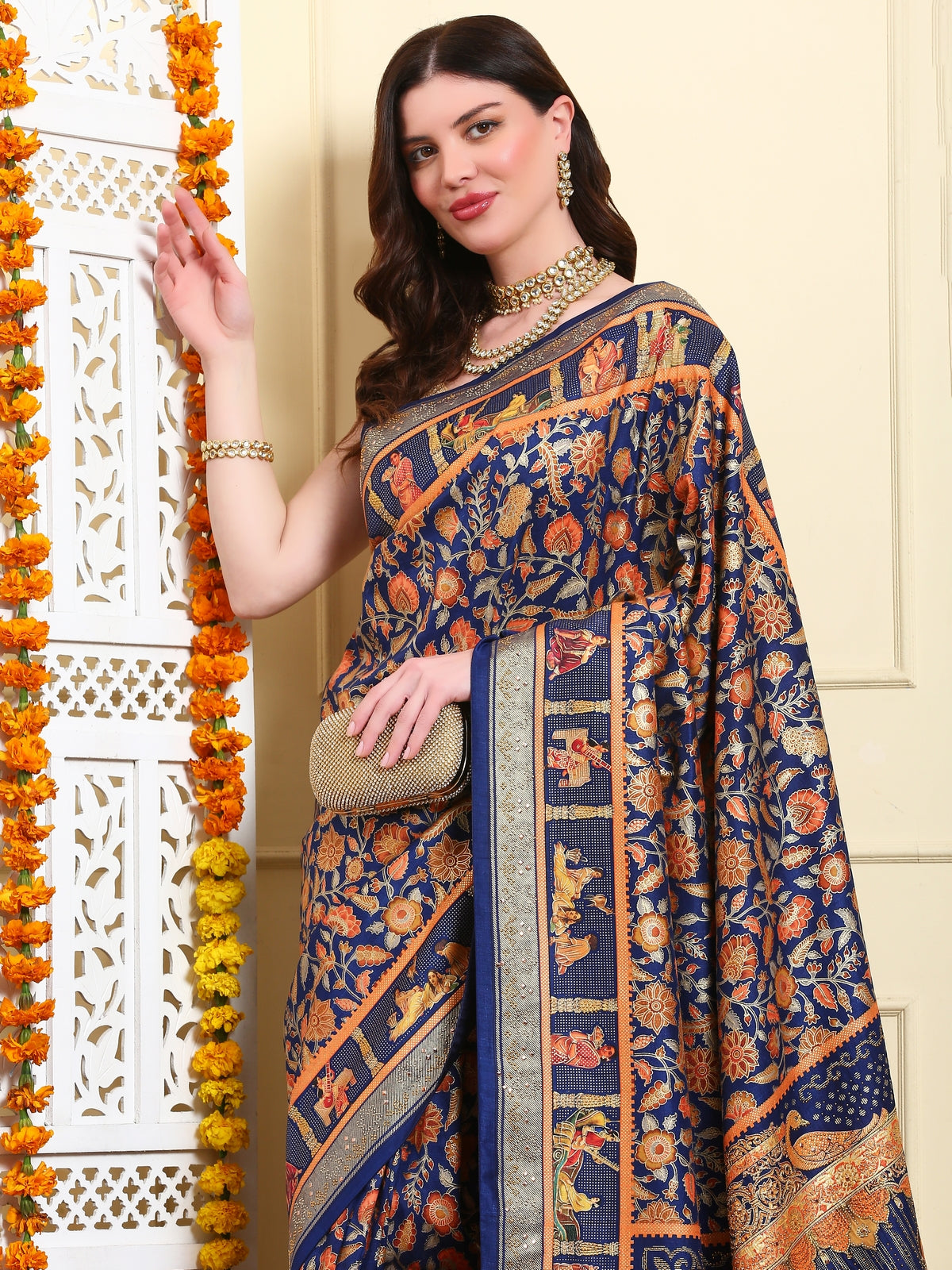 This Patola Silk Saree with traditional Figure design allover is enhanced with foil print and stunning stonework Pallu..These are timeless treasures showcasing the craftsmanship and mastery of our skilled weavers..