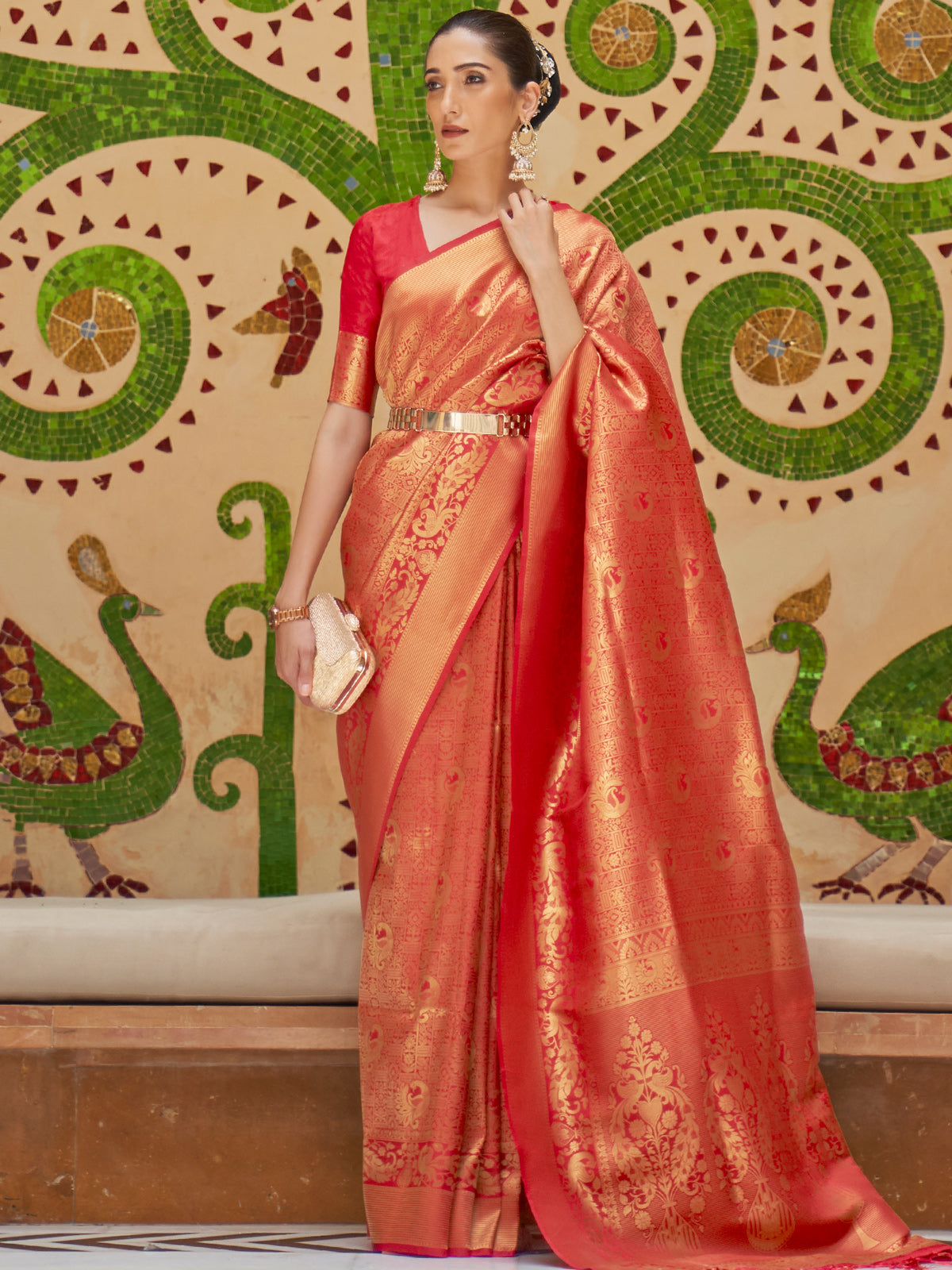 This gorgeous Silk Saree radiates traditional elegance in every thread...Woven with Gold Zari it's intricate design creates a luxurious texture enhanced by a stunning Pallu..The fabric is light weight and drapes well..