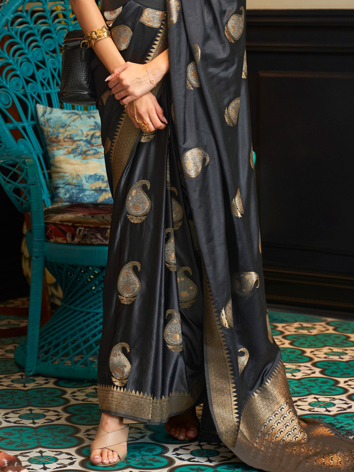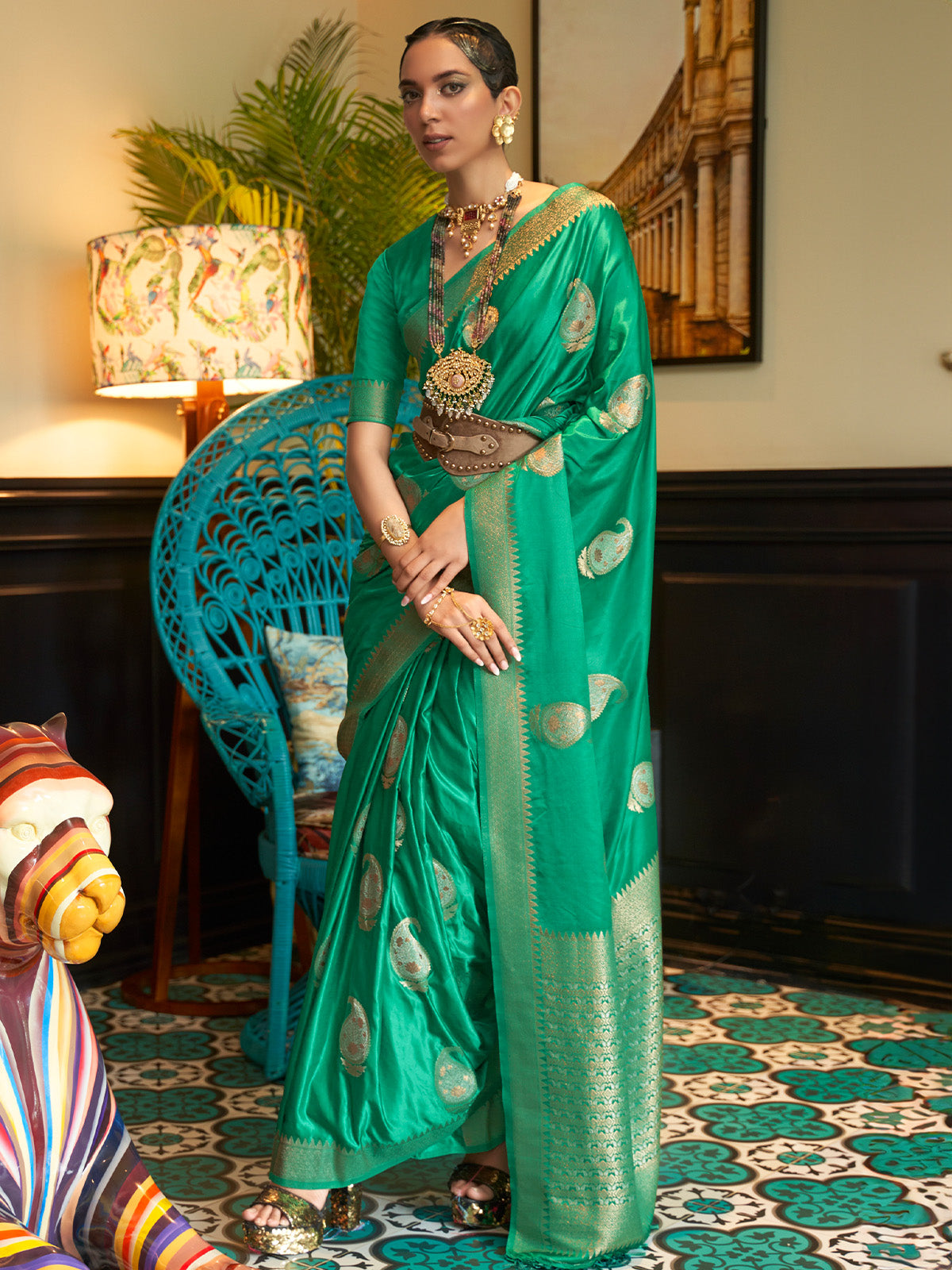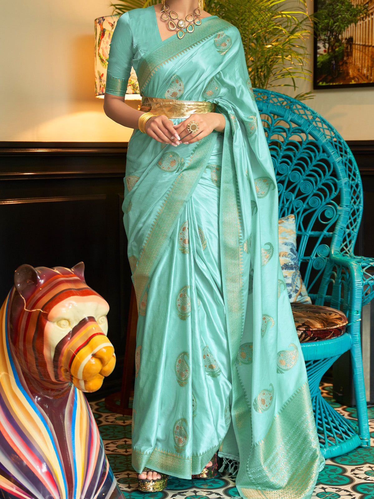 Stunning Satin Silk Sarees with paisley motifs and gorgeous pallu for that traditional look...The fabric has a luxurious texture and drapes well.. Its ideal for a festive occasion as it embodies the splendour and heritage of Indian craftsmanship....