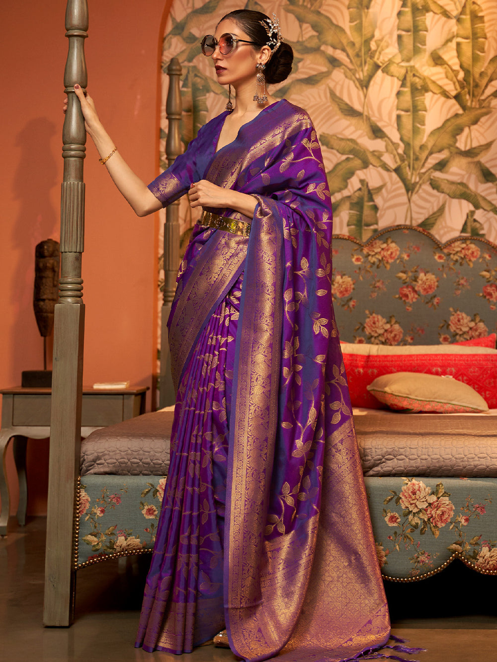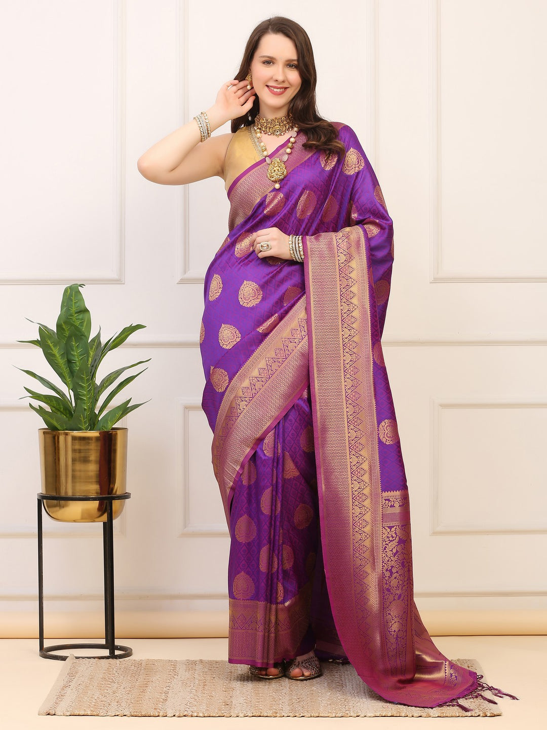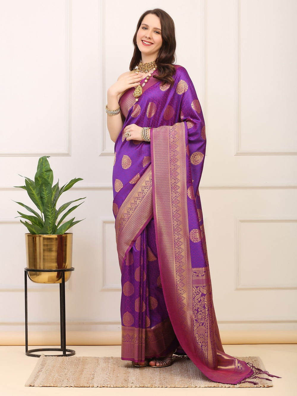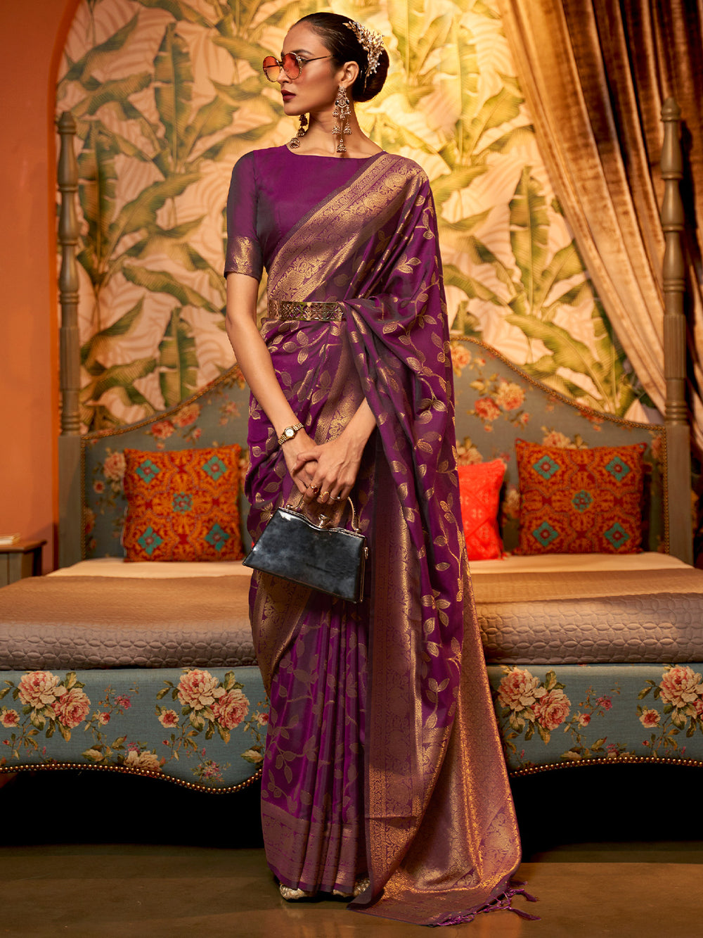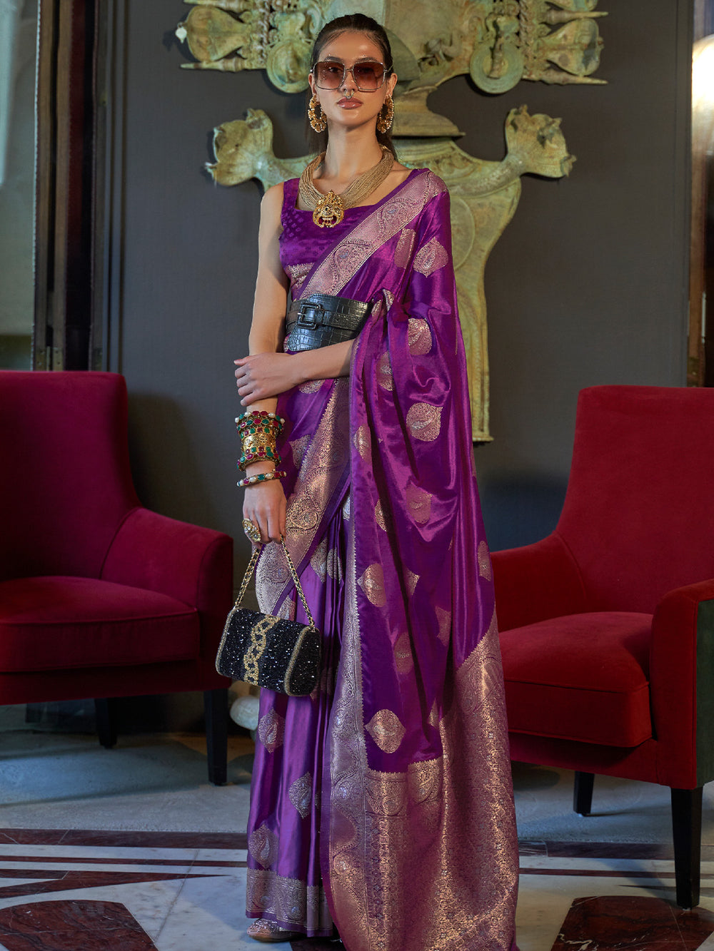 Deep Purple Purple & Pink Pure Katan Silk Saree