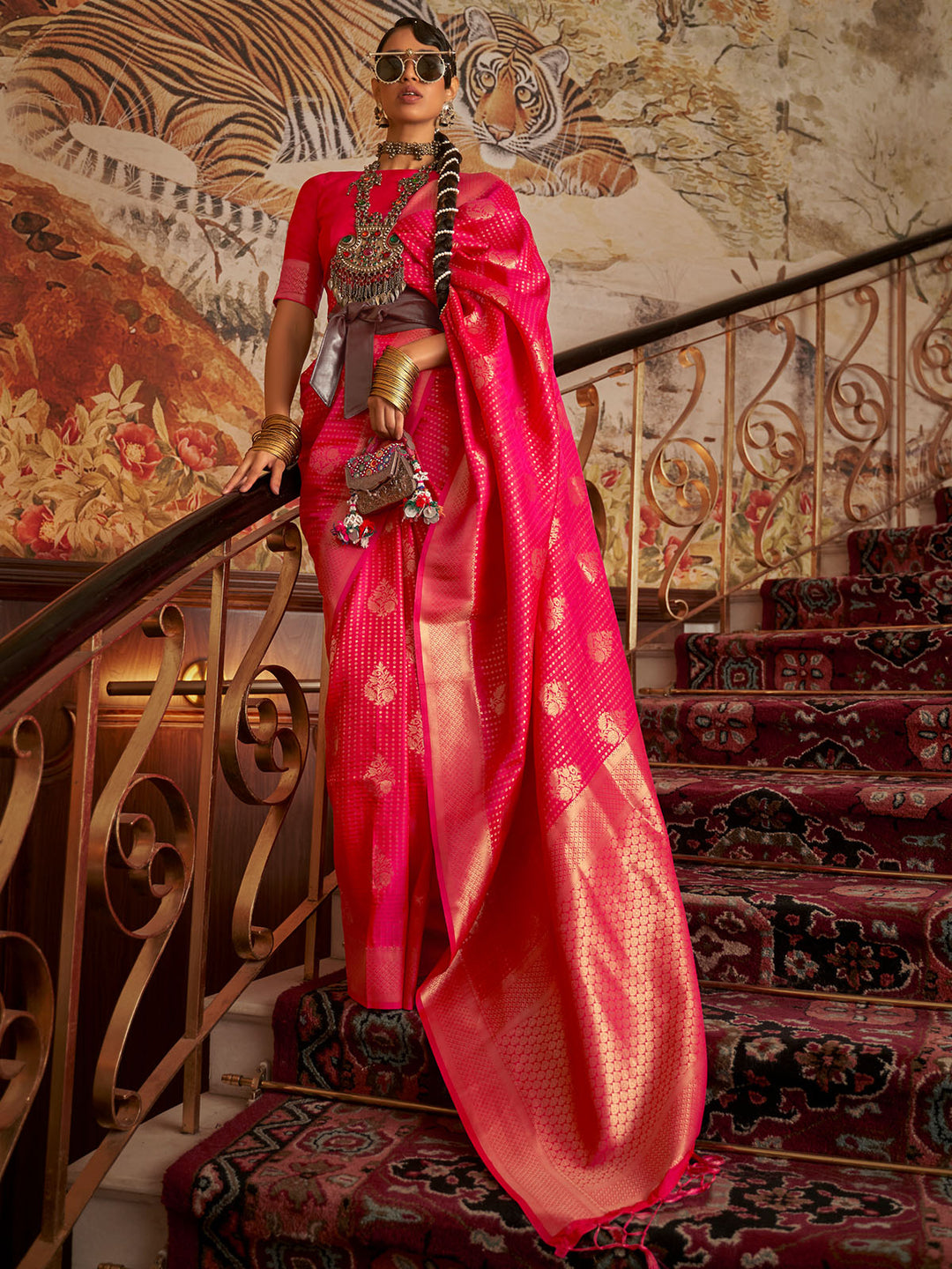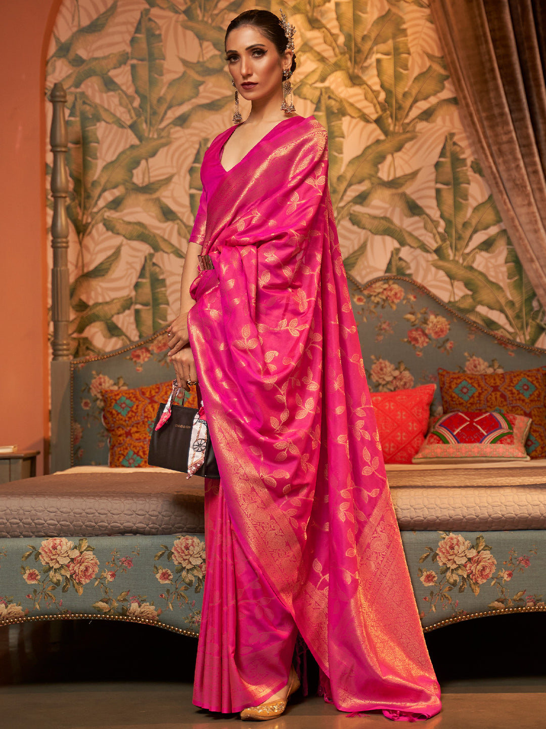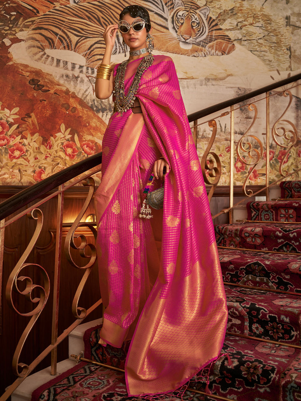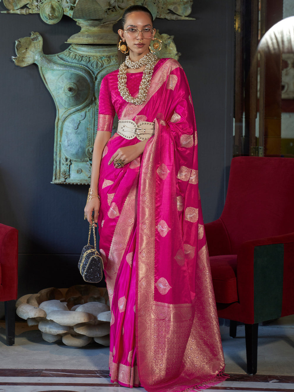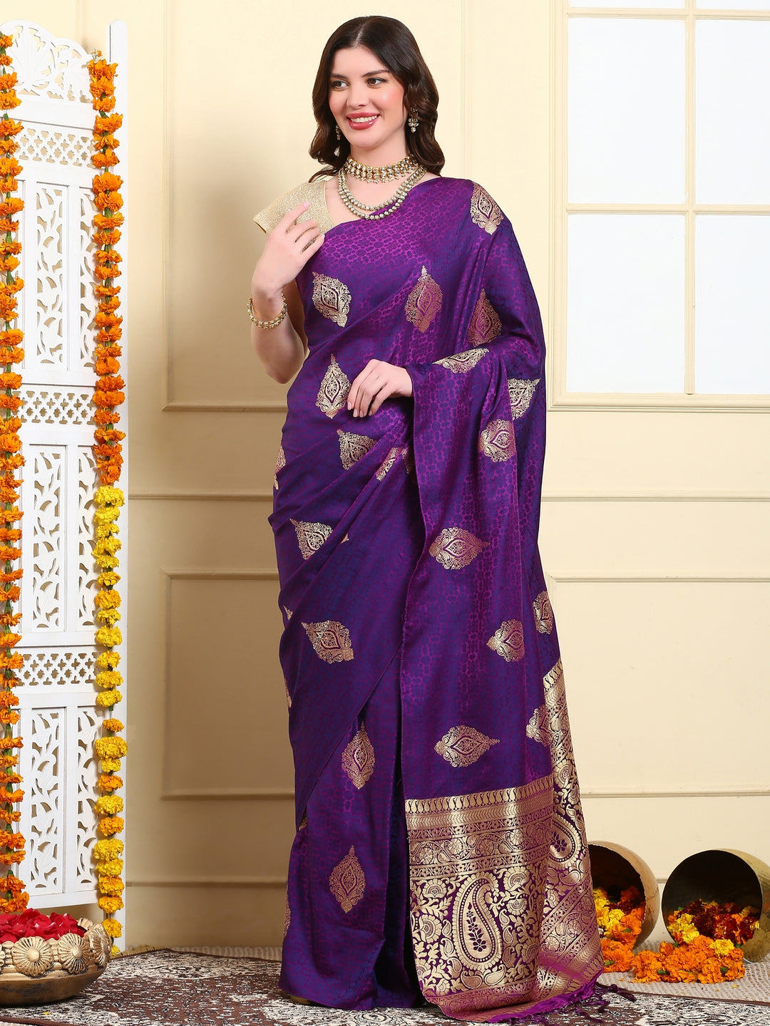 Deep Purple Purple & Pink Pure Katan Silk Saree