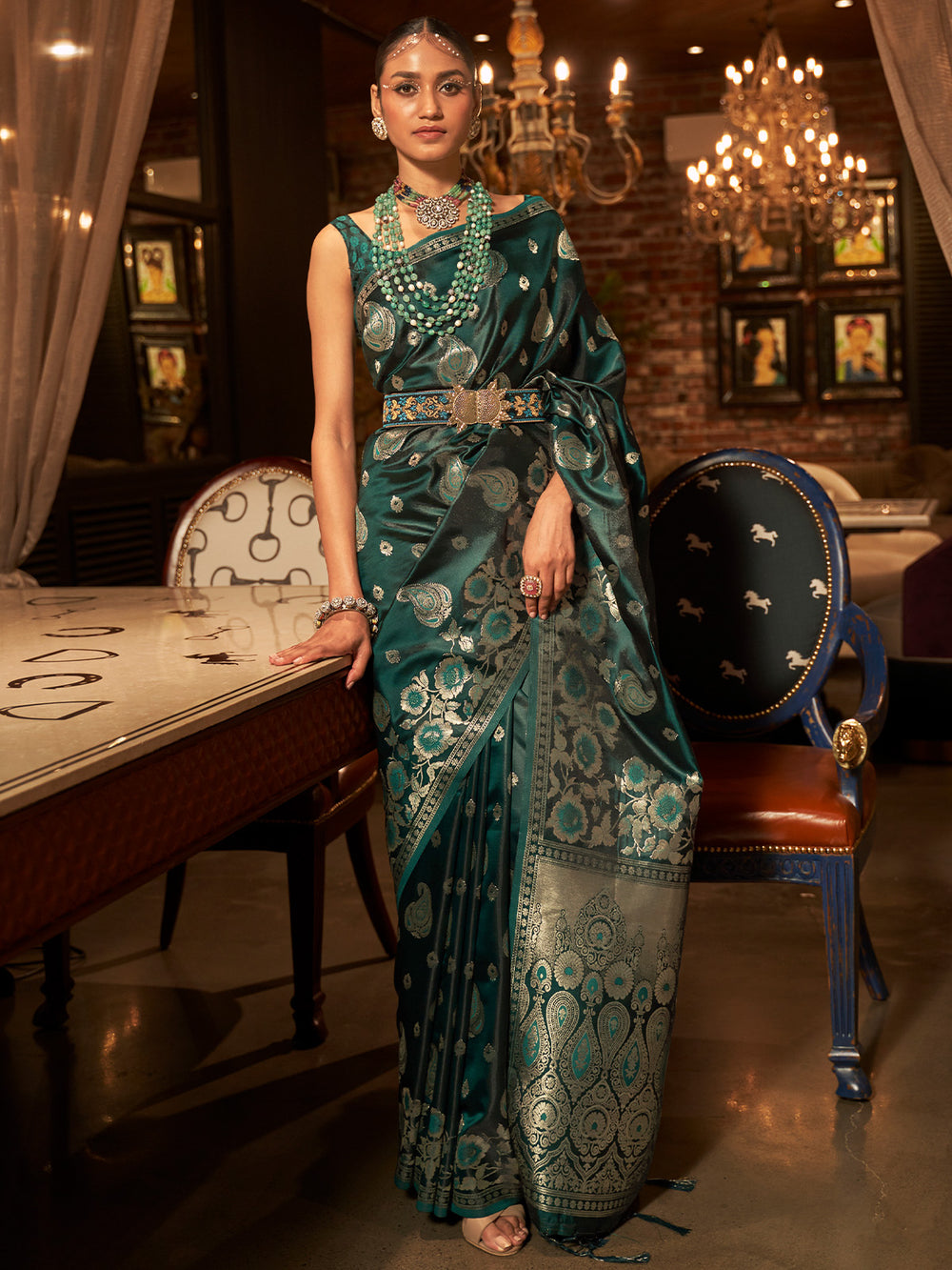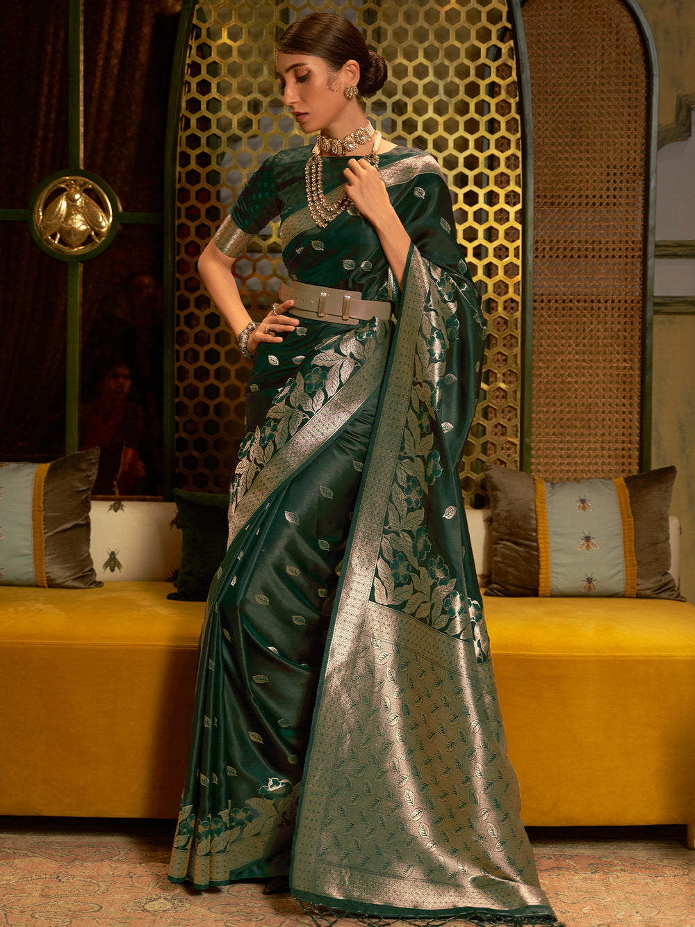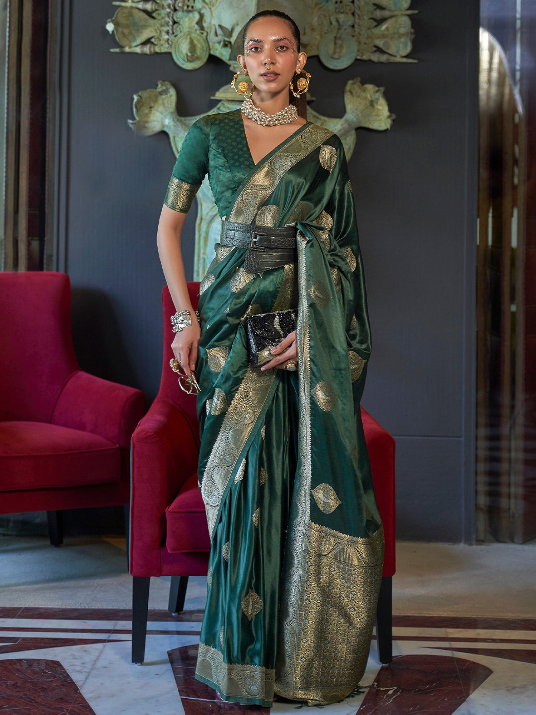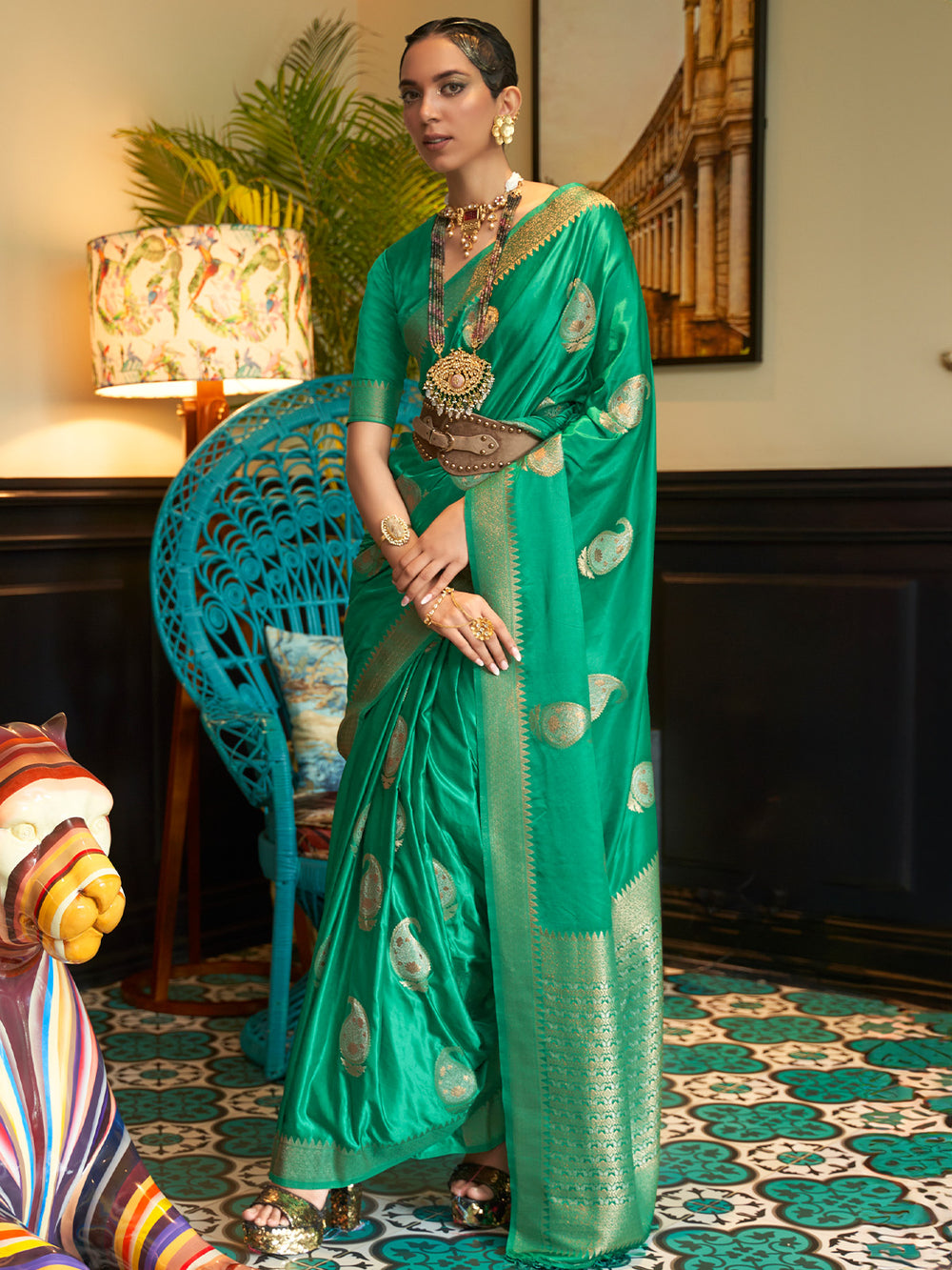 Emerald Green Purple & Pink Pure Katan Silk Saree