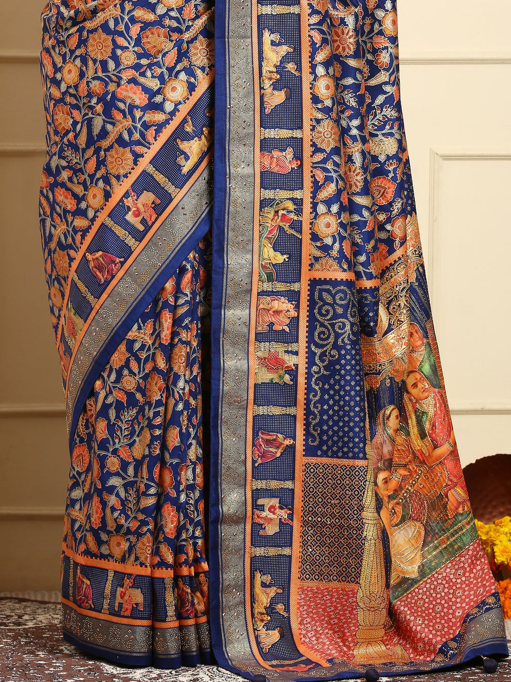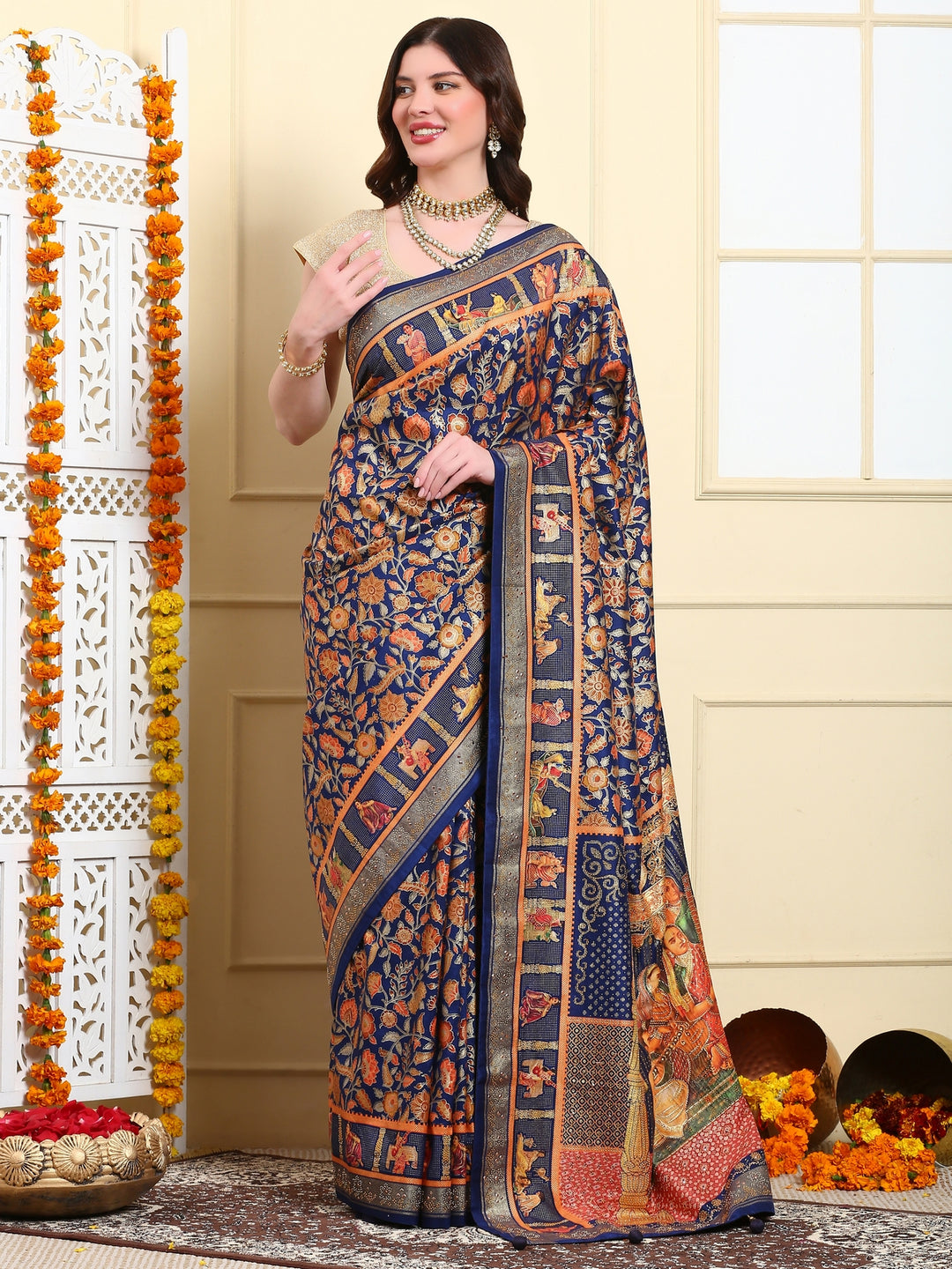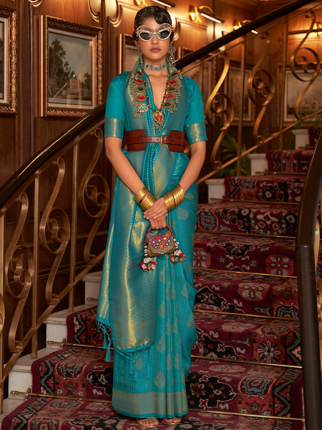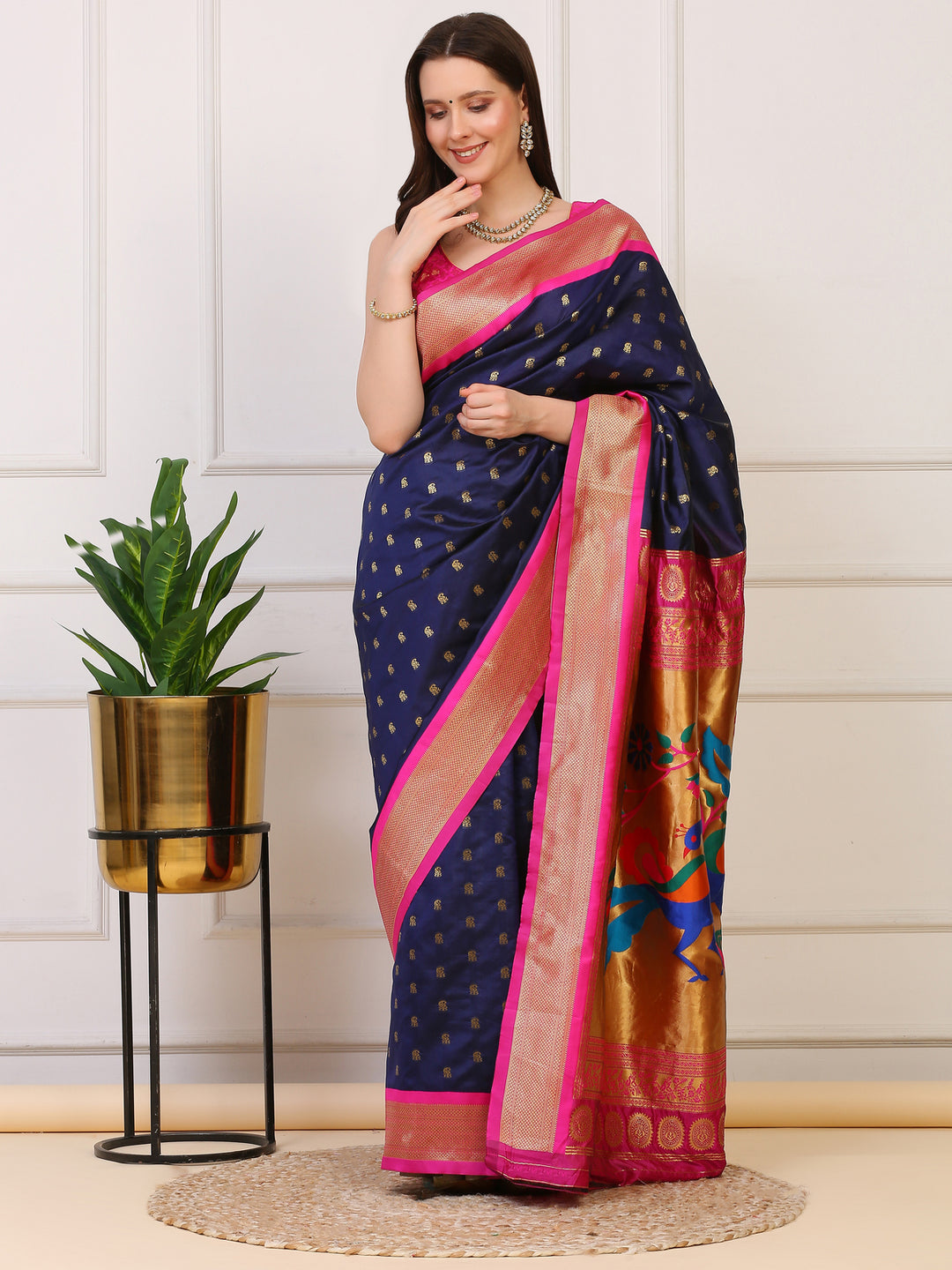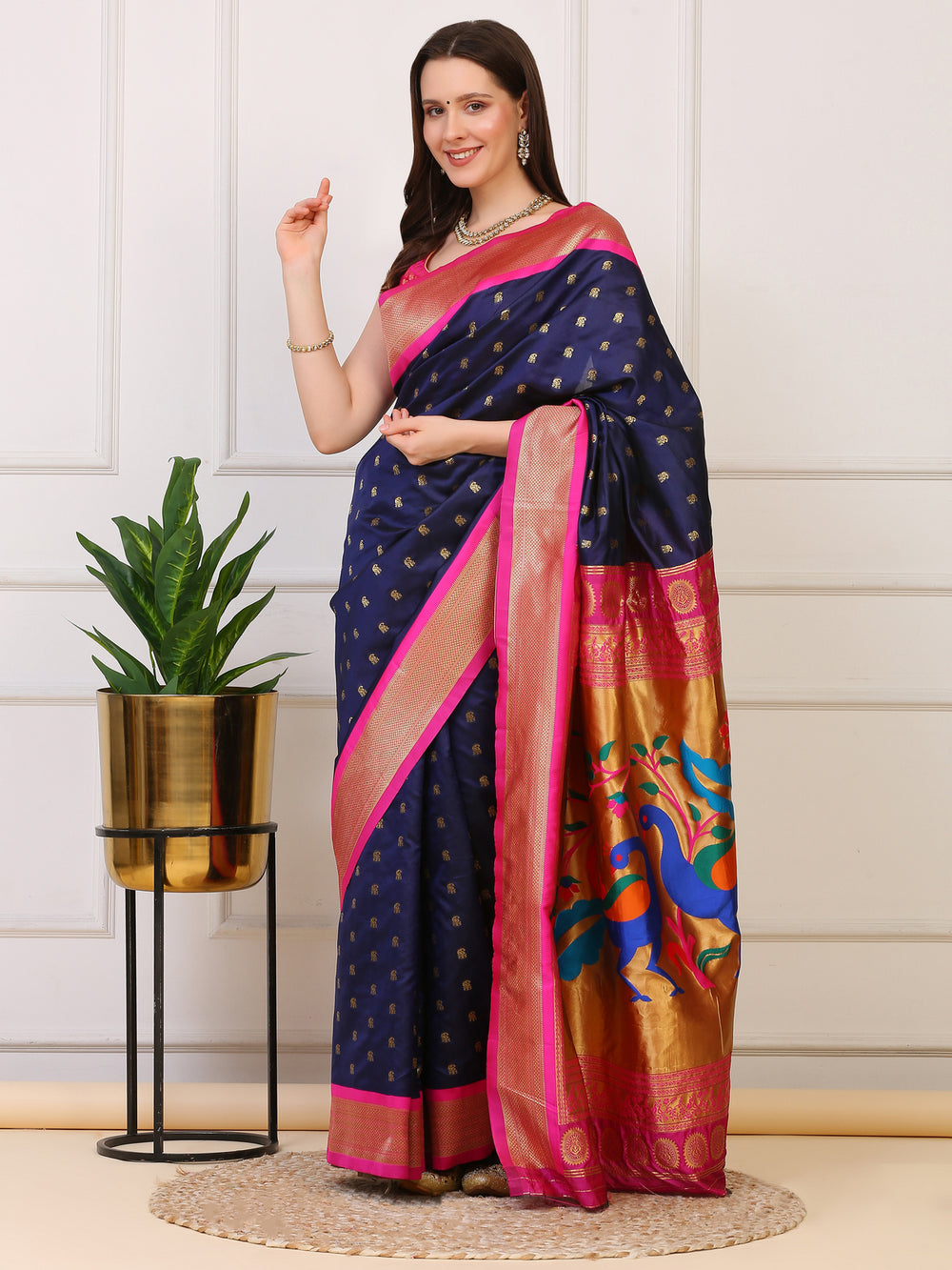 Emerald Green Purple & Pink Pure Katan Silk Saree