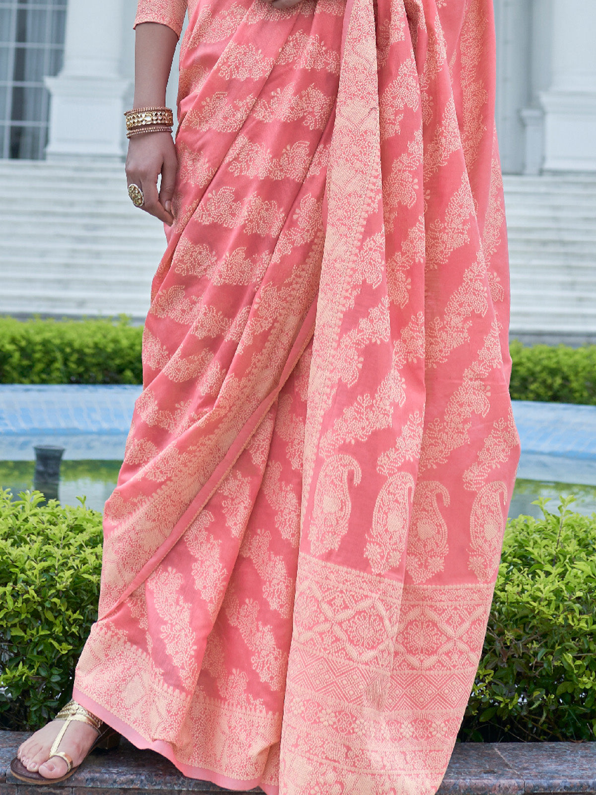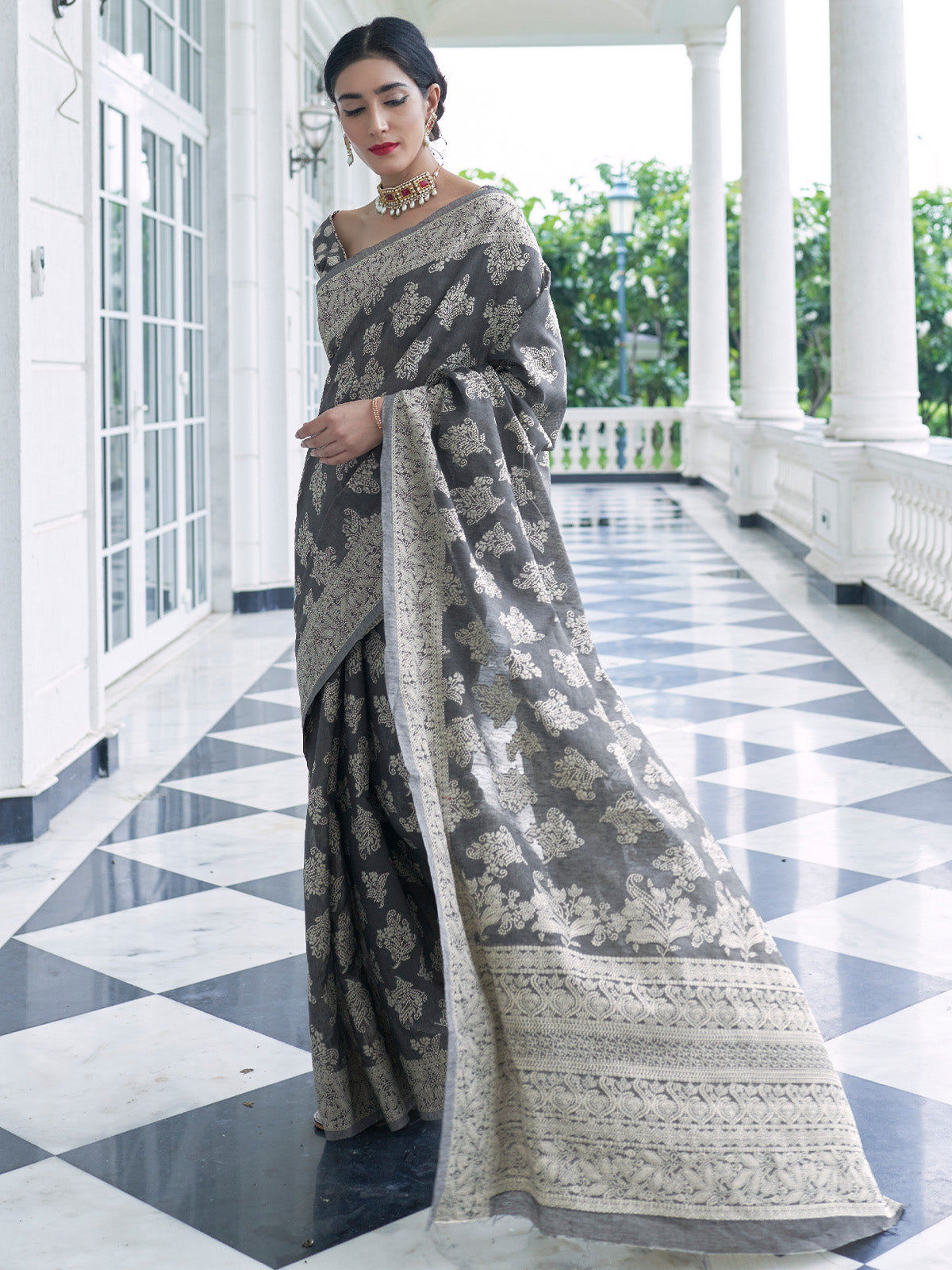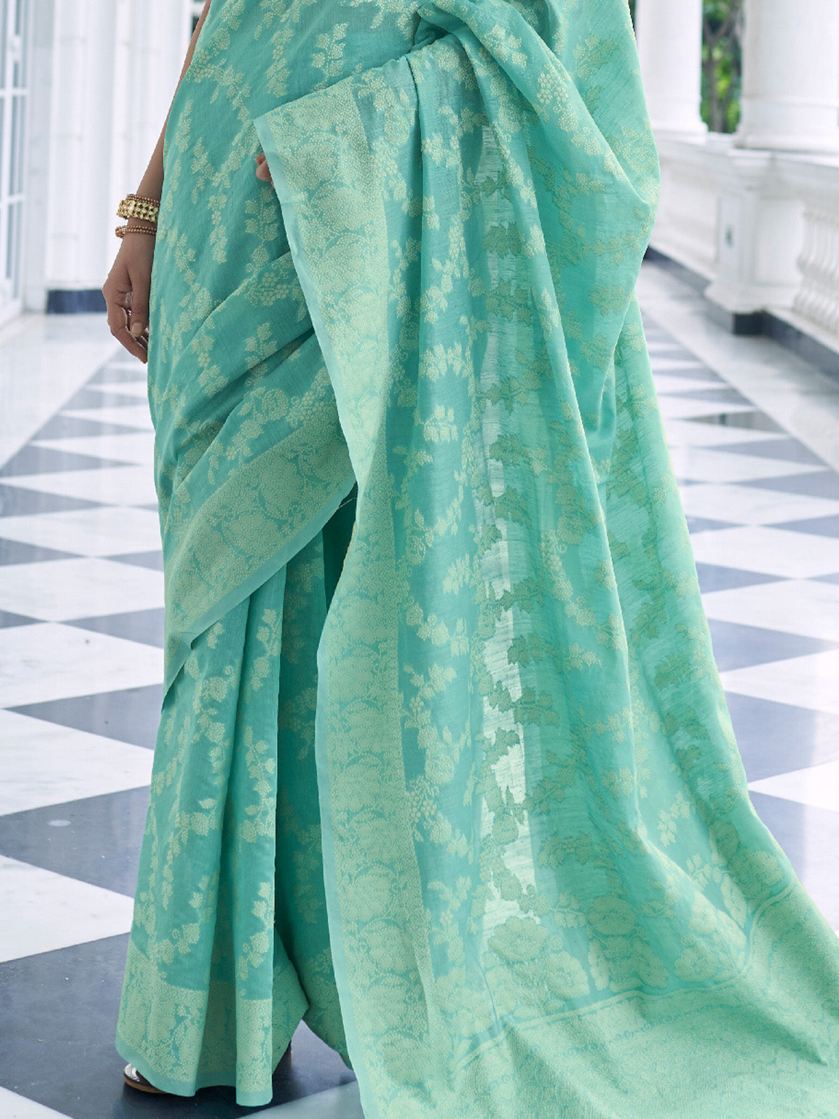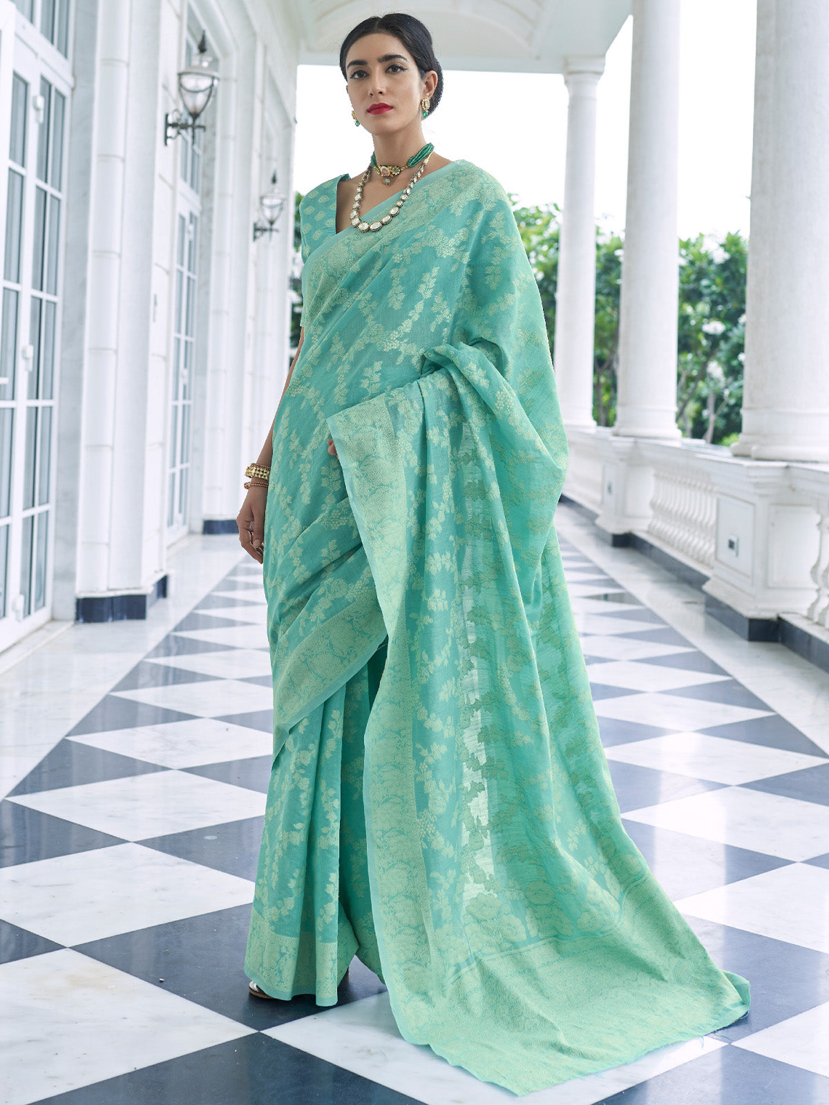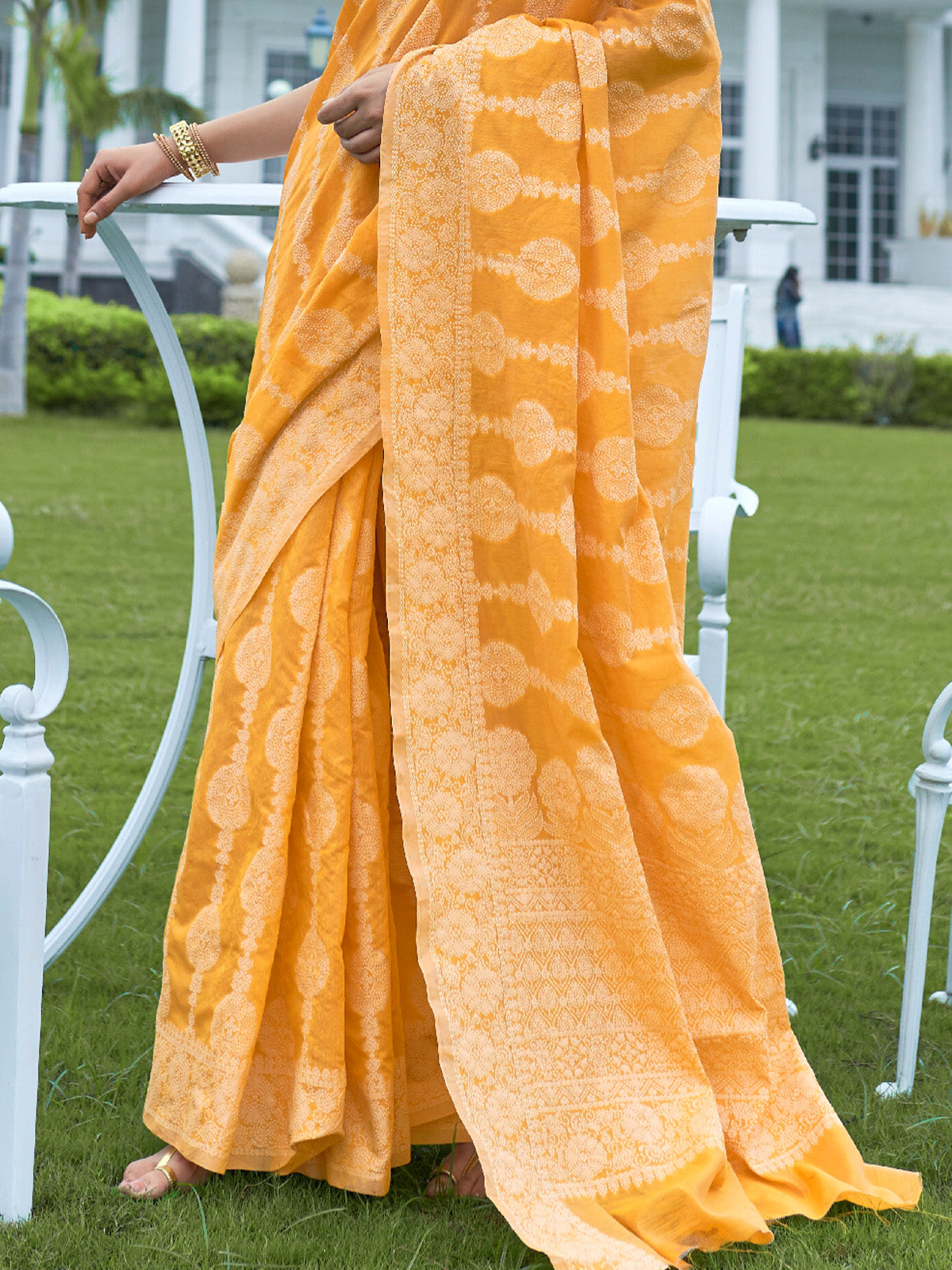Beautiful Lucknowi woven Handloom Sarees with all over weaving enhanced with gorgeous pallu and blouse piece for that traditional look...The fabric drapes well and displays a stylish and elegant look..
