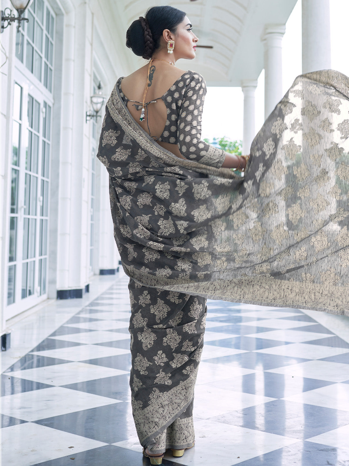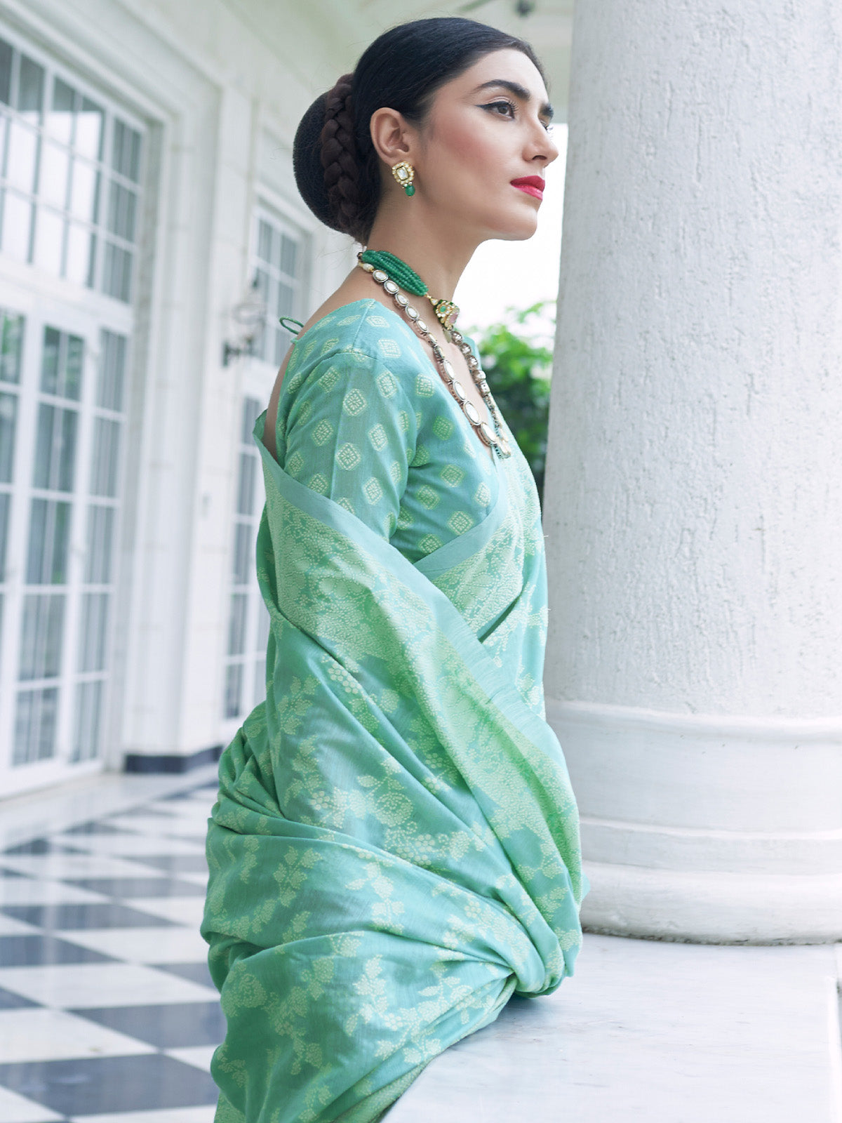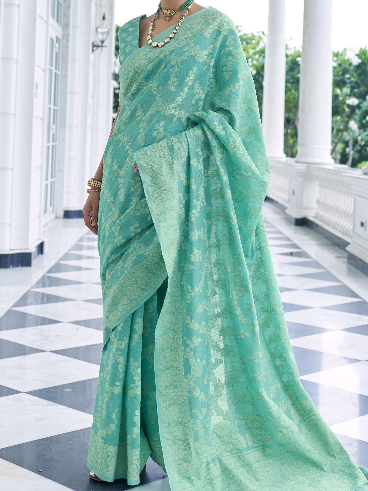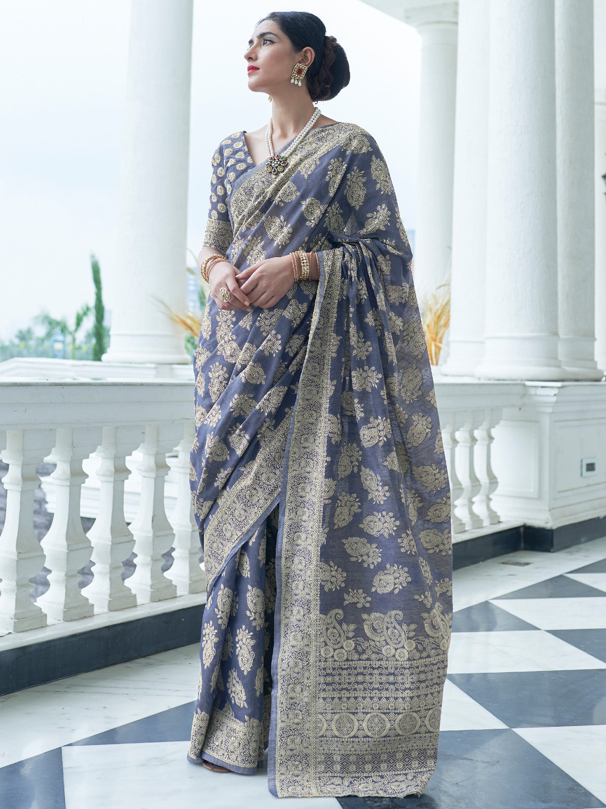 Beautiful Lucknowi woven Handloom Sarees with all over weaving enhanced with gorgeous pallu and blouse piece for that traditional look...The fabric drapes well and displays a stylish and elegant look..