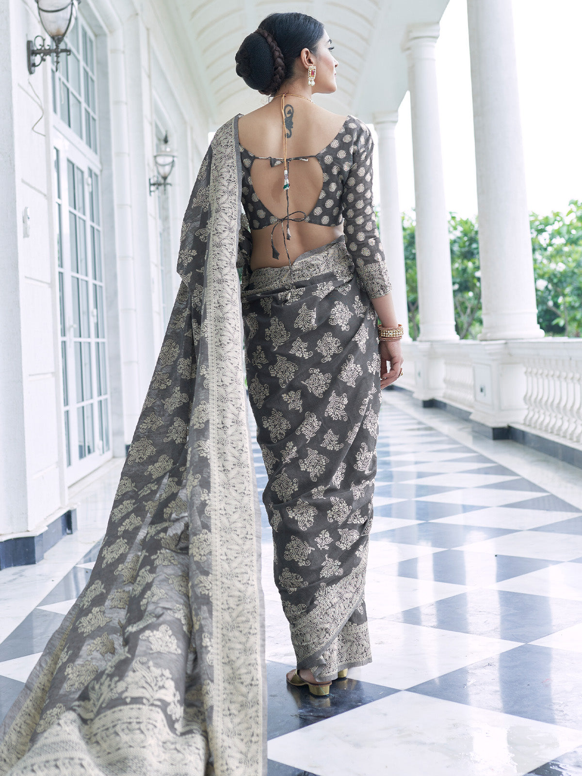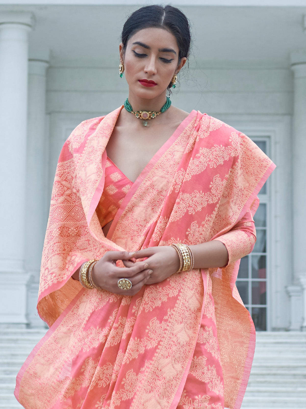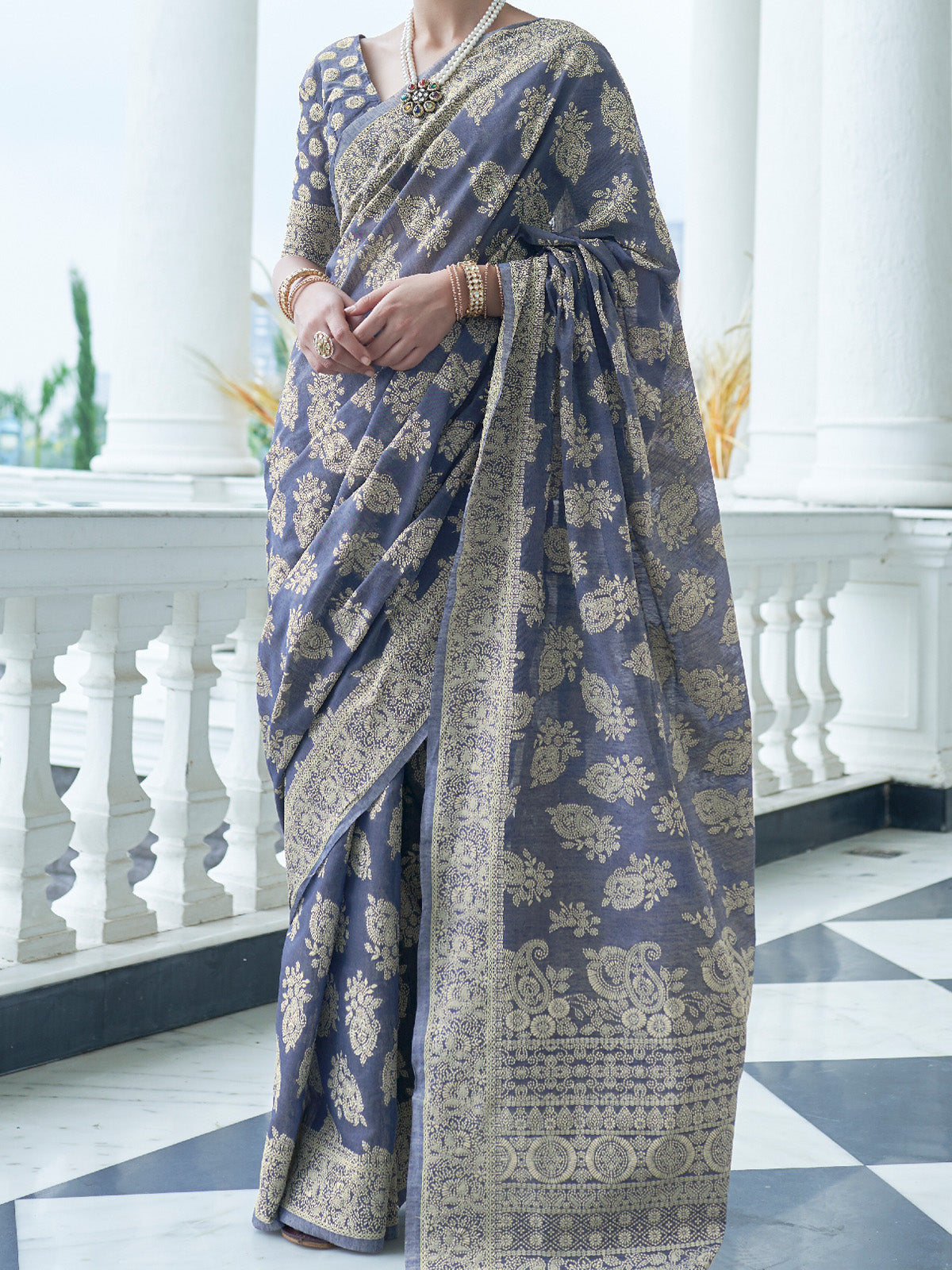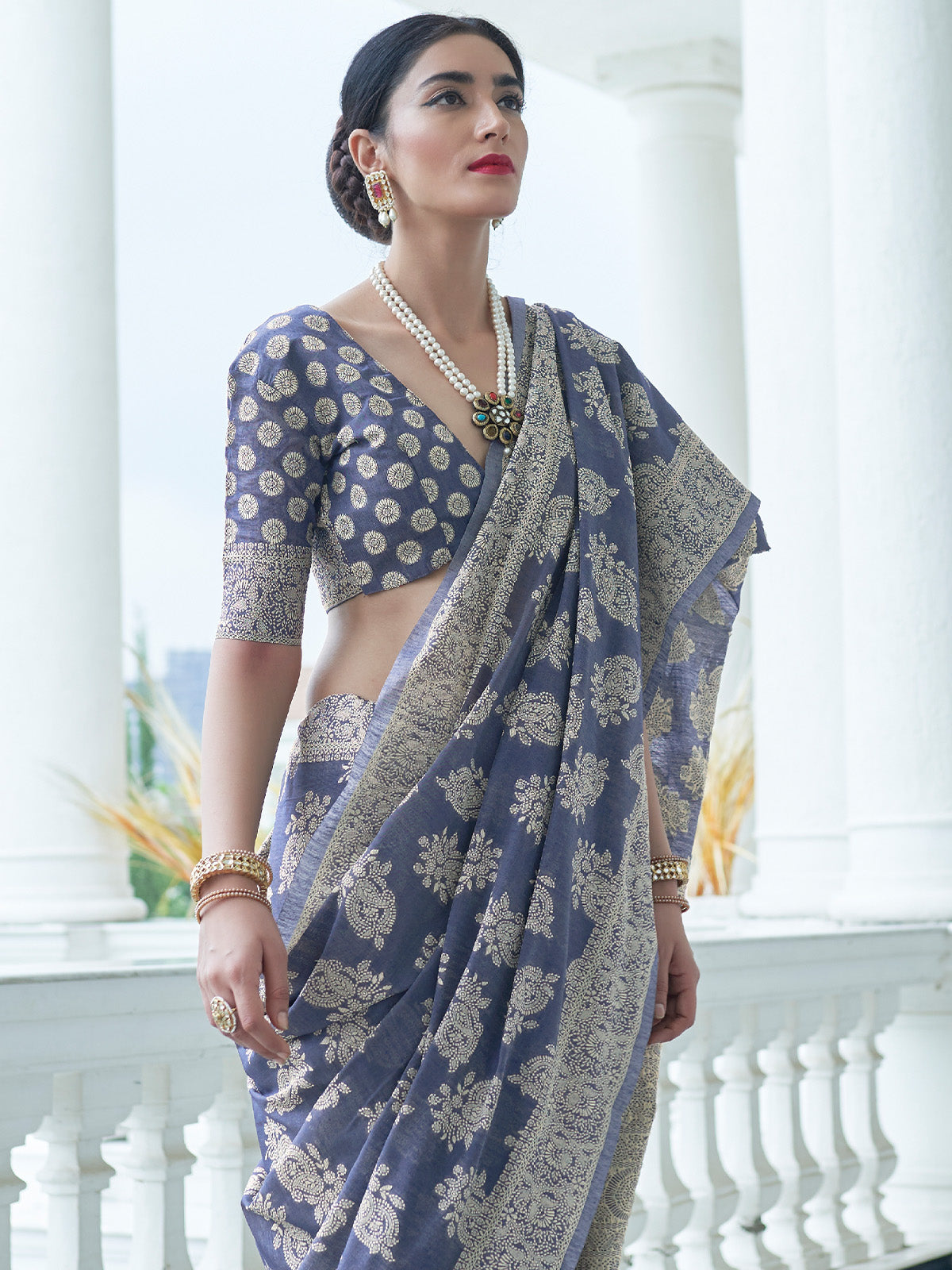 Beautiful Lucknowi woven Handloom Sarees with all over weaving enhanced with gorgeous pallu and blouse piece for that traditional look...The fabric drapes well and displays a stylish and elegant look..
